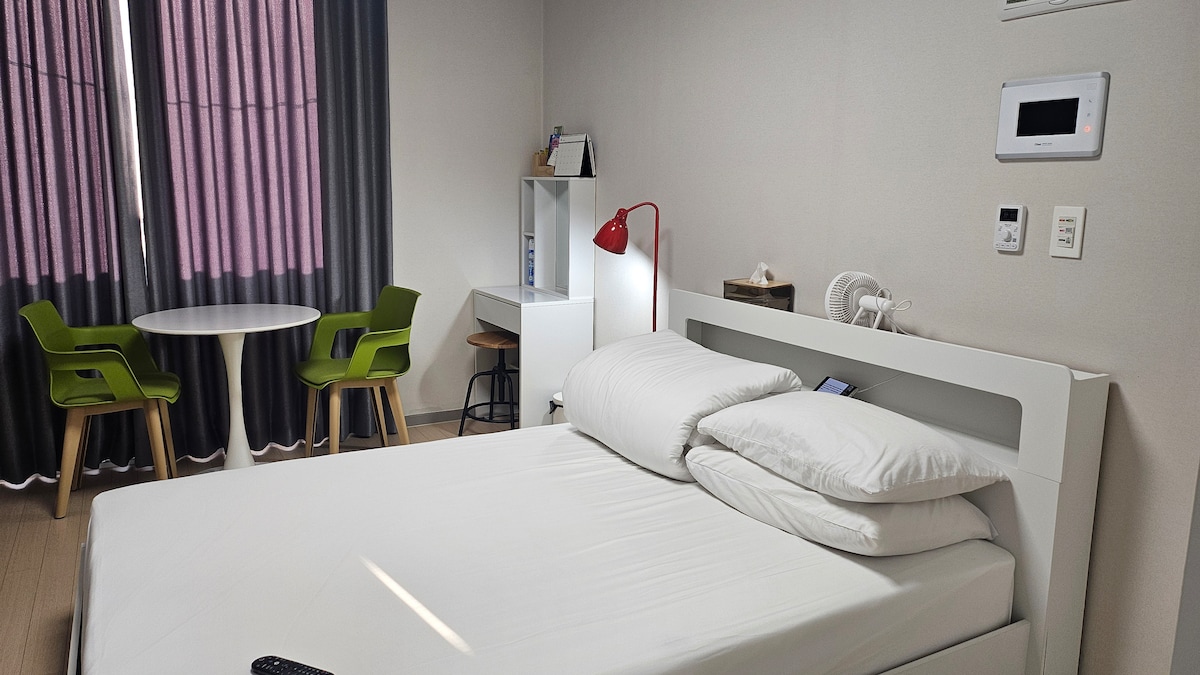 🏡[Óstán Bella] 20 Halla 📍na Cathrach - gil, Chuncheon - si, Bela City, Chuncheon 🚗páirceáil Clárú páirceála saor in aisce ar fáil - uimhir phláta ceadúnais iomlán ag teastáil Cumraíocht 🛏️an tseomra Leaba de mhéid banríona atá compordach d'fhanacht lánúine nó níos faide Athraítear leaba gan choinníoll agus an seomra á chothabháil Saoráidí 🍽️cistine Cuir gréithe boird agus plátaí ar fáil do líon na ndaoine (X breise) Sorn ionduchtaithe, cuisneoir 🛏️Saoráidí: 1 lítear uisce mianraí (2 bhuidéal in aghaidh na hoíche) Tuáillí (4 in aghaidh na hoíche curtha ar fáil) Ná nigh → tuáillí Níochán láimhe, glantóir cúr, gallúnach, tuáille cithfholcadáin Níochán coirp, seampú, feabhsaitheoir, triomadóir gruaige Taos fiacla, bord feistis 📶Áiseanna 🌐 Wi - Fi (Idirlíon Gan Teorainn agus Ard) 📺 Android TV/Netflix ar fáil (※ Níl ach ardán ar fáil) 🕓Uaireanta úsáide Seiceáil isteach: 4 pm (gan teagmháil) Amharc: 11:59 am Saoráidí 🛍️in aice láimhe Siopa áise: thart ar 20m Stáisiún Chuncheon, Legoland: 5 nóiméad sa charr Siúl 5 nóiméad chuig: Bainc, ionaid siopadóireachta faoi thalamh, siopadóireacht (Brown 5th Street), margadh traidisiúnta, alán easnacha sicín Bialanna 🍽️& fámaireacht mholta Is féidir bialanna áitiúla a mholadh, is féidir cúrsaí fámaireachta a mholadh Tarlaíonn torann le linn an imeachta os comhair halla na cathrach.