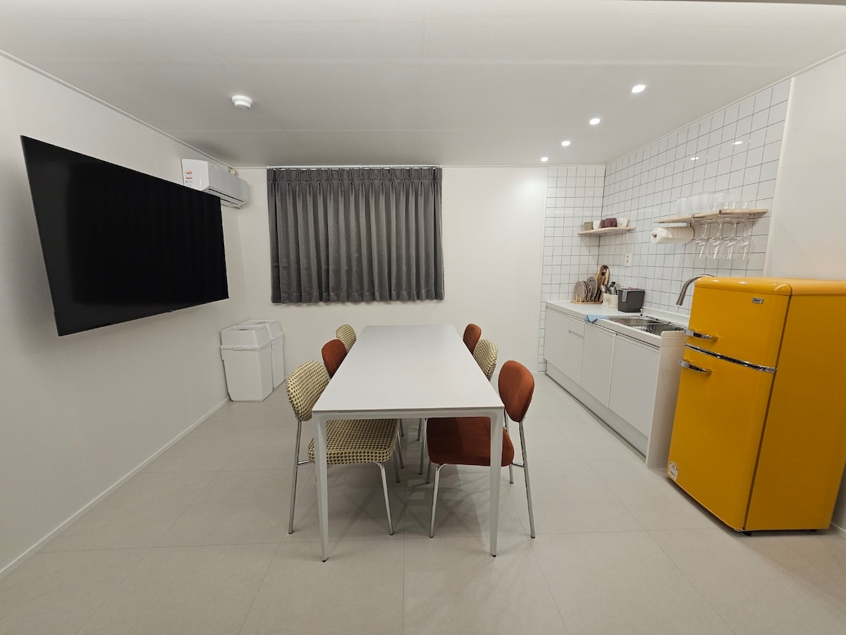 Seomra páirtí príobháideach i lár Cheonan Budang - dong! Tá sé beagáinín difriúil ó lóistíní eile atá socair agus suaimhneach!! Is féidir le brainse Heungpati Terrace freastal ar suas le 20 duine. Tá sé maisithe i bhfoirm seomra cóisire inar féidir leat fanacht:) Amhránaíocht agus liathróid scátháin ghairmiúil ón bhfíorshaol, cistin, crios grianghraf, tábla, cathaoir agus teilifíseán mór 65 orlach, Tá 6 chárta grafacha 3070 againn agus fiú an ríomhaire agus an gléas cinn is fearr. Bain sult as súgradh speisialta inár spás féin, Bíonn siad ag canadh agus ag maolú struis. Is spás saor in aisce é inar féidir leat taitneamh a bhaint as a bheith ag caint agus cuimhní cinn a thógáil! Tá sé suite i lár Budang - dong, mar sin tá sé gar do bhialanna nach féidir leat a chailleadh do chóisir. Bhí inrochtaineacht fabhrach agam freisin chun bianna seachadta iomadúla a ordú:) Cóisir thonnadóra ghalánta le gach rud a d'fhéadfadh a bheith ag teastáil uait le haghaidh cóisire ♡ Má tá ceist ar bith agat, déan teagmháil linn ar an bhfón. Gongilgong 8694 0281 Beidh dúil mhór agat sa tréimhse atá agat anseo, atá bríomhar. ** Níl aon leapacha ag Ardán Heungpati, agus cuirtear 10 sraith ar a laghad de mhataí agus de chnapáin chúnta ar fáil **