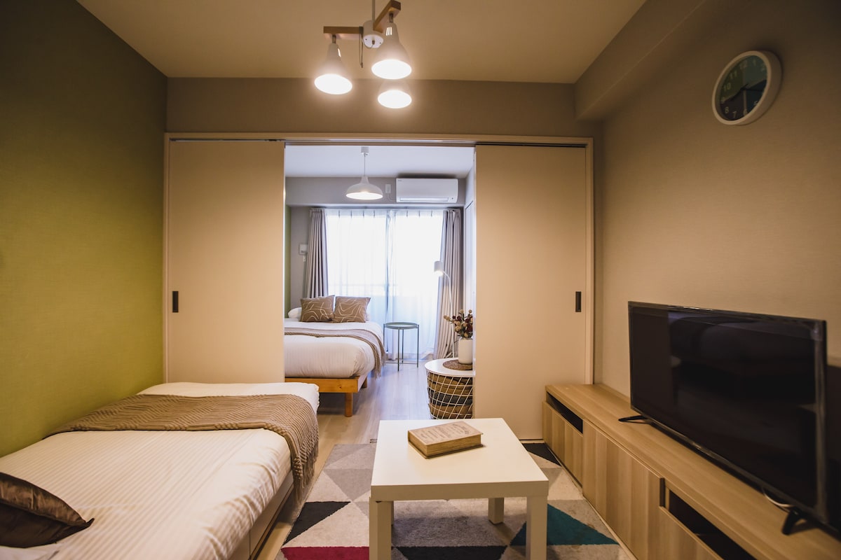 Foirfe le haghaidh dáta! Osclaíodh ★le déanaí i mí Feabhra 2022! ★dhá leaba shingil 0.9m x 2m ★5 nóiméad siúil ó Stáisiún Nihonbashi ★6 nóiméad siúil ó Dotonbori Wi ★- Fi ardluais san áireamh Ní ★úsáidimid ach táirgí ó mhonaróirí móra na Seapáine do gach fearas tí. Triomadóir ★níocháin ar fáil ★Is féidir leat féachaint ar fhíseáin idirlín ar nós Netflix agus Hulu chomh maith le cláir theilifíse trastíre ar do theilifís 4K! * Ní féidir ach leo siúd a bhfuil cuntas acu féachaint ar sheirbhísí físe ar líne.