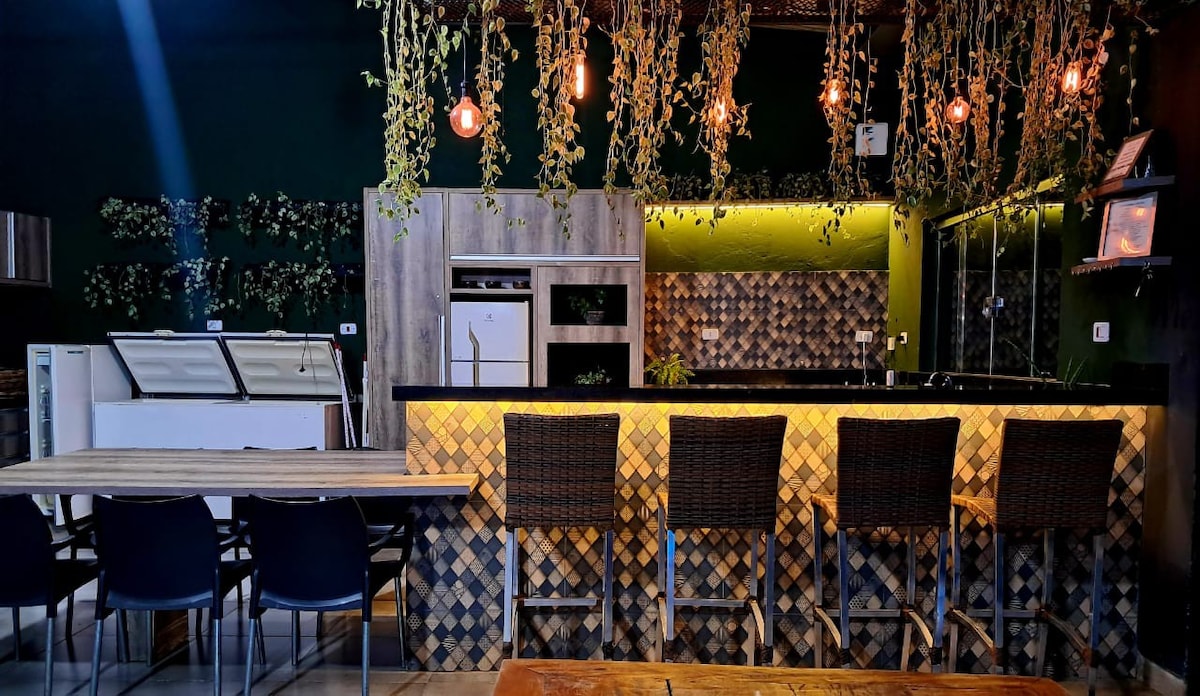 Divirta-se com toda a família neste lugar cheio de estilo,uma casa confortável charmosa contendo um quarto ,um banheiro ,sala de estar ,cozinha americana ,lavanderia e estacionamento . obs: ar condicionado e sofa cama podendo acomodar até 4 pessoas e criança .