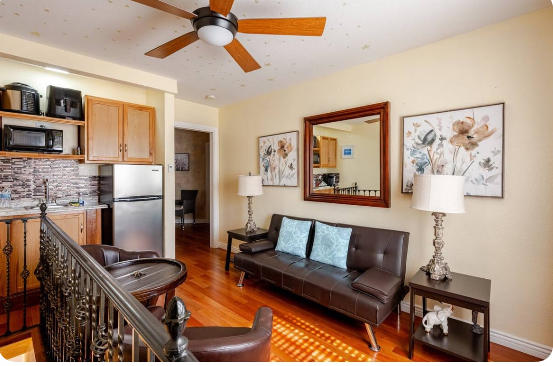 Déan iniúchadh ar an mbonn baile foirfe i gcroílár Cheantar Ealaíon Las Vegas, áit a dtagann cultúr agus cruthaitheacht ar an saol. Tá ár lochta stiúideo i lár na cathrach deartha chun an meascán foirfe de chompord, áisiúlacht agus inspioráid a thairiscint le Wi - Fi tapa, leaba chompordach, agus deasc spás oibre atá feistithe le monatóir. Tá smaointeachas, carachtar agus pearsantacht ag baint leis an stiúideo seo. Ag cuimsiú cheantar na n - ealaíon cultúrtha ina bhfuil cónaí air. Bí táirgiúil ar an deasc mhór nó cuir do chearrbhachas ar siúl leis na SNES saincheaptha a sholáthraítear.