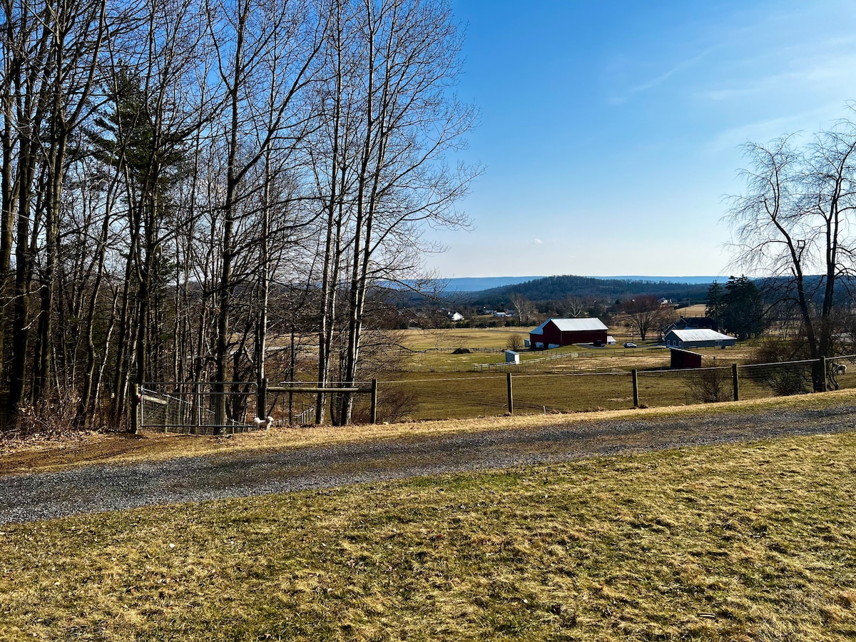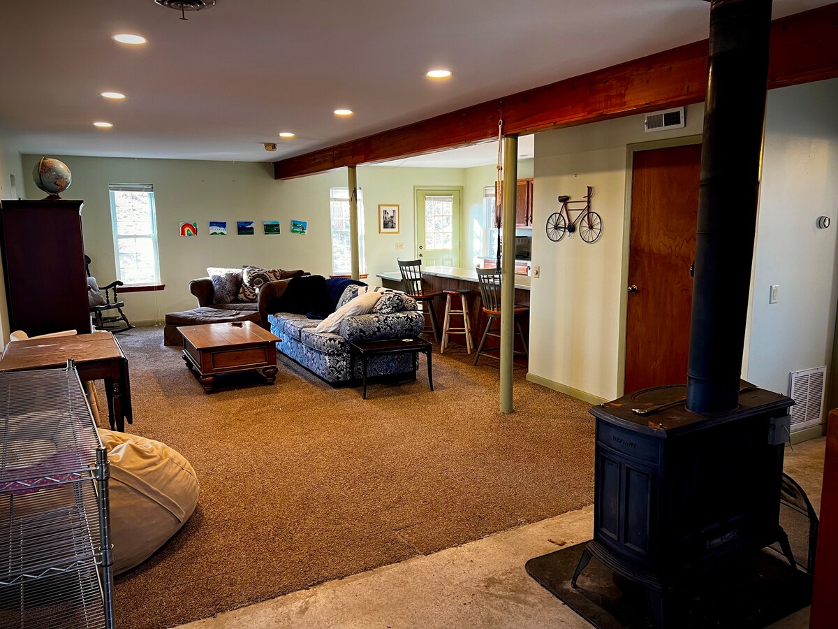 Tar isteach sa choill in árasán stiúideo gleoite le radharc fairsing ar an bhfeirm amach ón bpóirse agus tú ag súimín ar do chupán caife ar maidin. Is í Ann an t - óstach má theastaíonn aon rud uait nó má bhíonn aon cheist agat. Le rochtain éasca ar I80, ní bheidh tú ach achar gearr (thart ar 13 nóim) ó Black Moshannon State Park agus thart ar thiomáint 40 nóiméad go Penn State. Go leor áiteanna iontacha a bhaineann leis an dúlra le cuairt a thabhairt orthu, mar shampla Páirc Stáit Sinnemahoning, Páirc Stáit Bald Eagle, Bennezette (radharcanna eilc), agus eile.