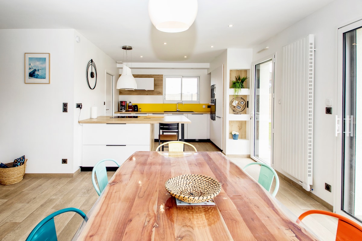 Is féidir cíos deireadh seachtaine a fháil. Villa atá oiriúnach do laethanta saoire do theaghlaigh nó do ghrúpaí cairde. Lonnaithe i Cléder, 300 m ón trá Amiets, cosáin chósta agus GR 34. Codlaíonn sé 8, tá seomra suí mór geal ann, cistin ina bhfuil oileán lárnach, áit itheacháin chairdiúil, agus tá bá mór ann a thugann rochtain ar an ngairdín. Ar an ardán dín is féidir leat taitneamh a bhaint as an áit suí agus na cathaoireacha deice, ag féachaint amach ar na dumhcha, ar an bhfarraige, ar oileán Batz