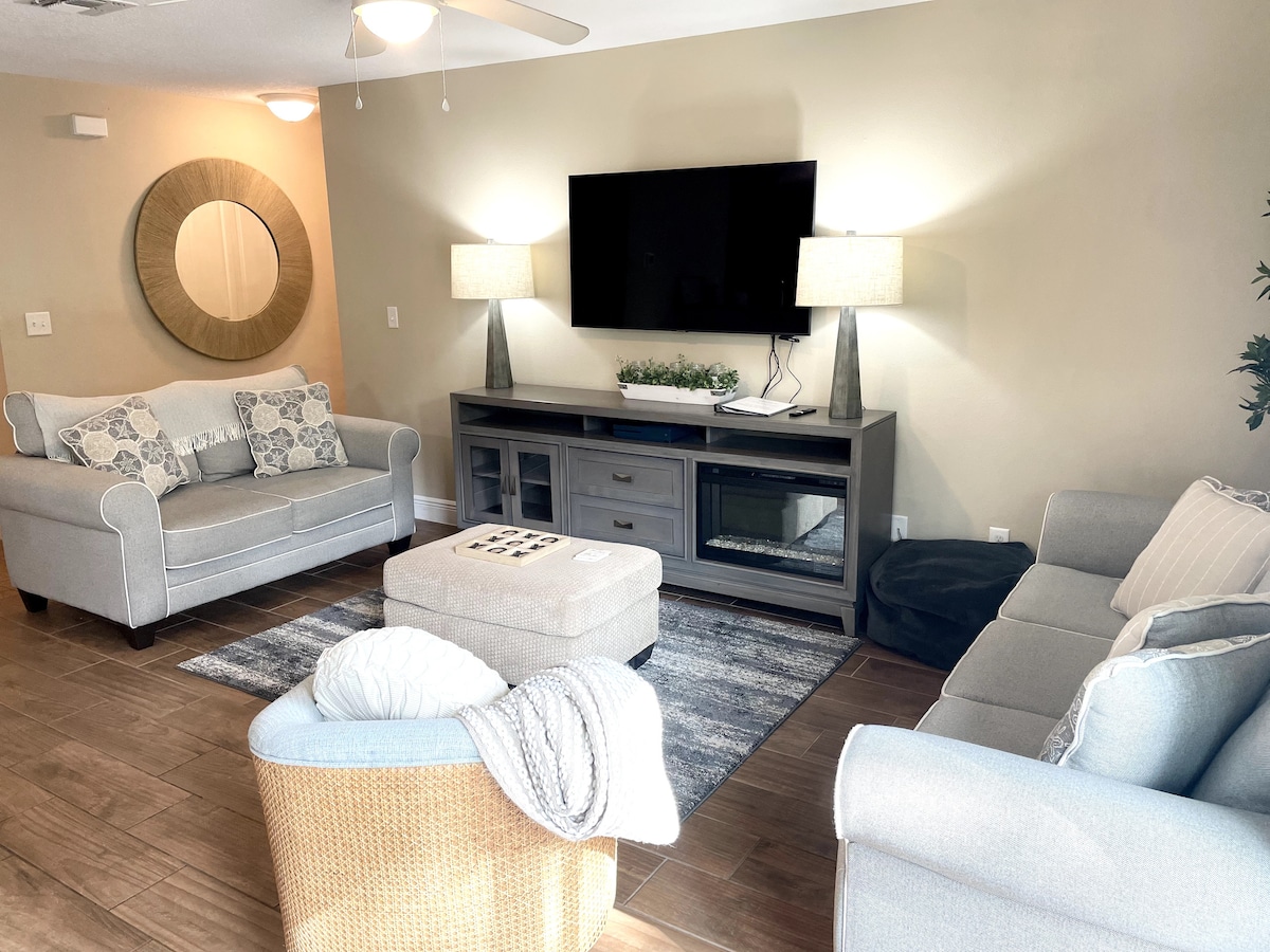 Teach galánta 4 Leaba/3 Seomra Folctha a athchóiríodh le déanaí, atá suite go hidéalach ar Cul - de - Sac ciúin díreach nóiméad ar shiúl ó dhraíocht Disney! Tá an Airbnb fáilteach seo foirfe do theaghlaigh agus do chairde atá ag lorg saoire speisialta. Bain sult as saoráidí nua - aimseartha amhail Teilifíseáin Chliste, cistin lánfheistithe ina bhfuil beár caife, agus gameroom lán le spraoi. Scaoil isteach sa linn snámha phríobháideach nó gabh roinnt solas na gréine in Florida ar tholglann. Is é an tearmann foirfe é tar éis lá ag Disney. Déan áirithint anois le haghaidh saoire ghearr dhraíochta shuaimhneach!