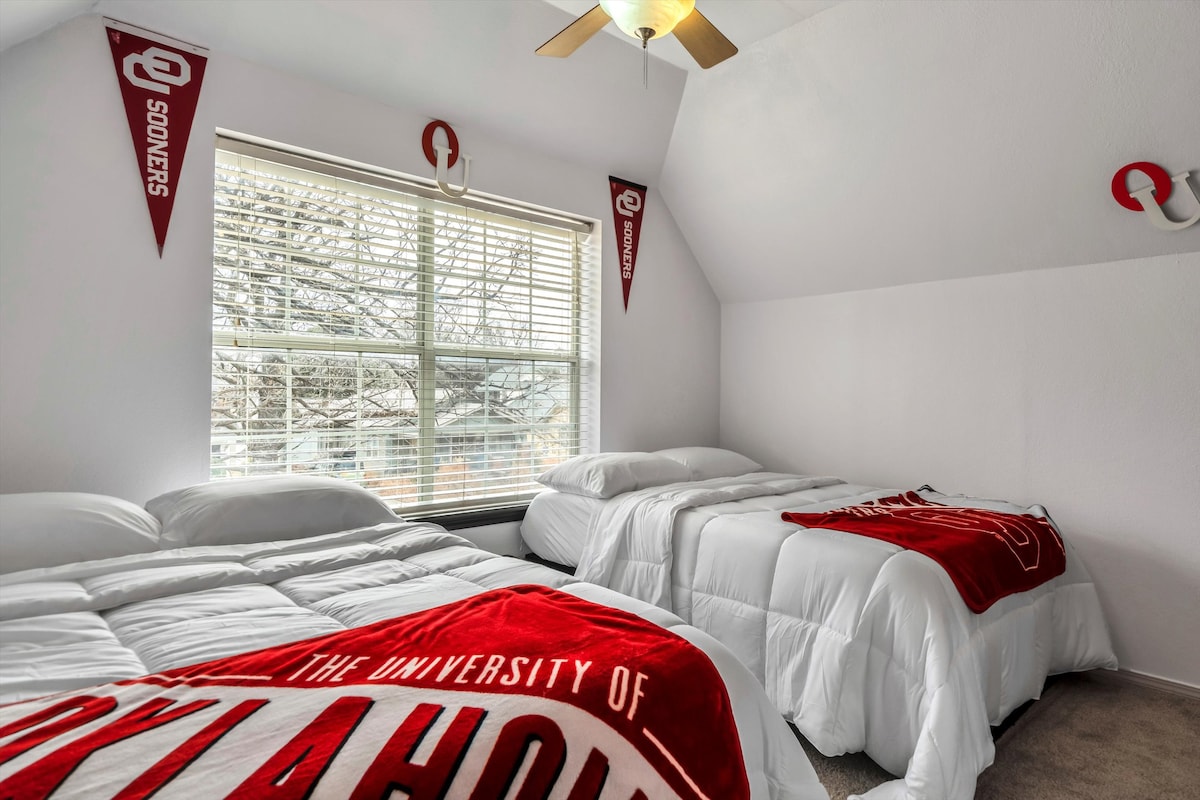Spread out in this spacious Norman home with 3 full baths, a screened porch, and TVs in every bedroom. Perfect for game days, campus visits, work crews, or weekend getaways. Relax by the fire pit, soak in the hot tub, or grill out for an Oklahoma cookout. Enjoy a fully stocked kitchen, coffee bar, comfy beds, and arcade games. This large private home is designed for comfort—we look forward to hosting you!