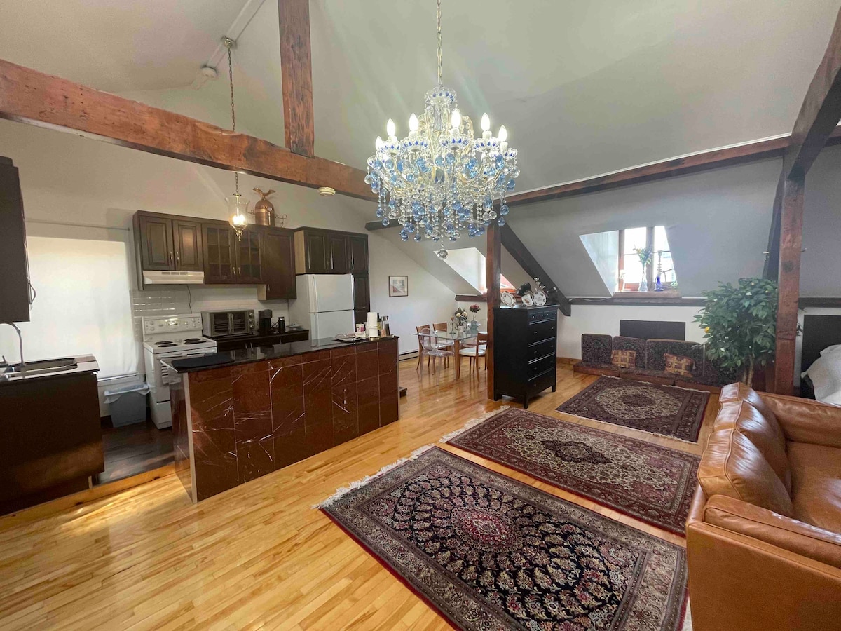 Fáilte go dtí an Penthouse, árasán 1700+ troigh cearnach le hardaitheoir príobháideach agus radhairc ar an Seanphort, Sean - Montréal & croílár an bhaile. Spás iontach do chairde agus do mhuintir, le 3+1 seomra leapa, bord bia le suíocháin ar feadh 10, go leor solais ó 3 thaobh, agus suíomh nach féidir a shárú i seancheantar airgeadais stairiúil Old Montréal. Tuilleadh grianghraf & sonraí ag teacht go luath! CITQ # 308317