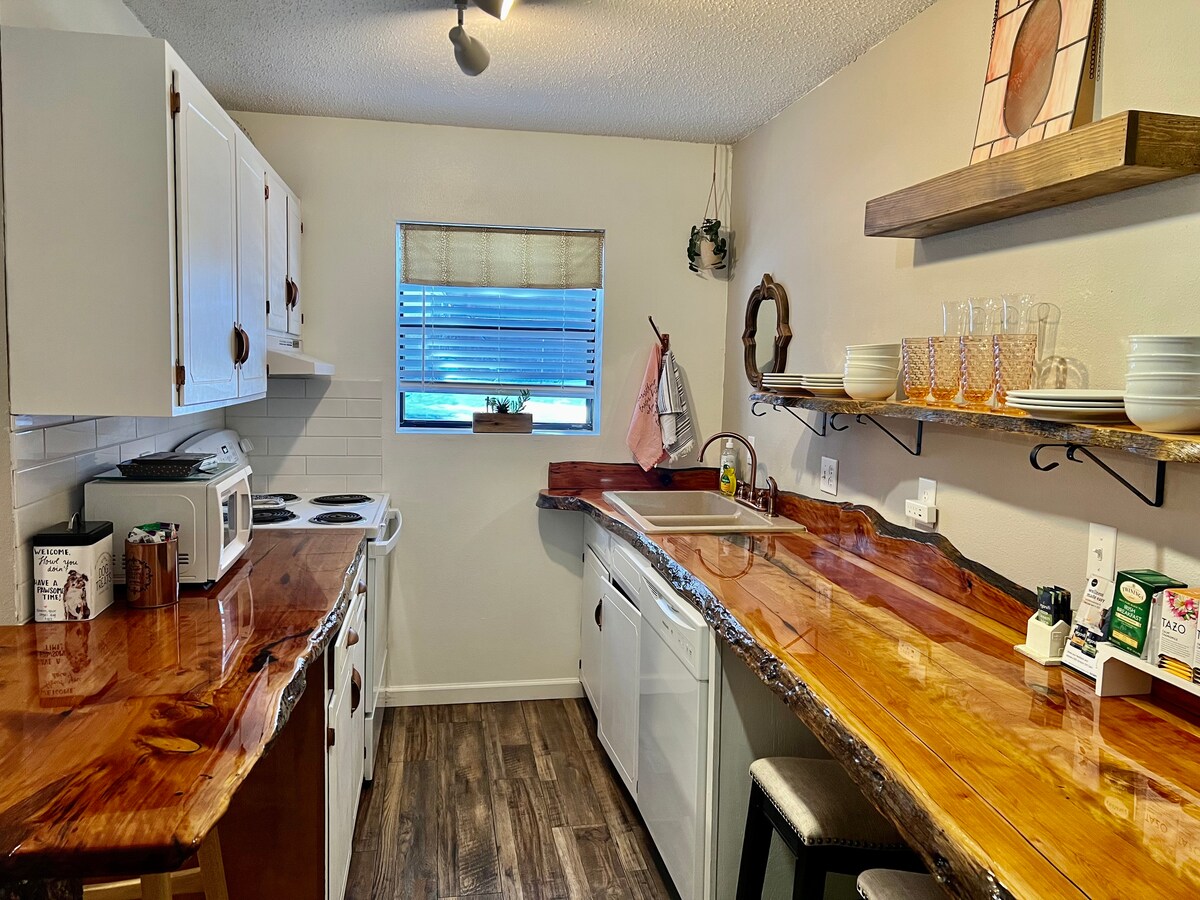 Nestled along a neighborhood street(we have close neighbors) & close walking distance of downtown Cloudcroft, this cozy & updated 2 bed/1bath house is surrounded by trees & close to trailheads, restaurants & activities for the perfect getaway. A stocked open concept kitchen including dishwasher, new mattresses on the queen & bunk beds & inviting living room with fire place ensure your stay is restful, relaxing & comfortable . Pet-friendly & suitable for everyone. Welcome to Sweet Sarah!