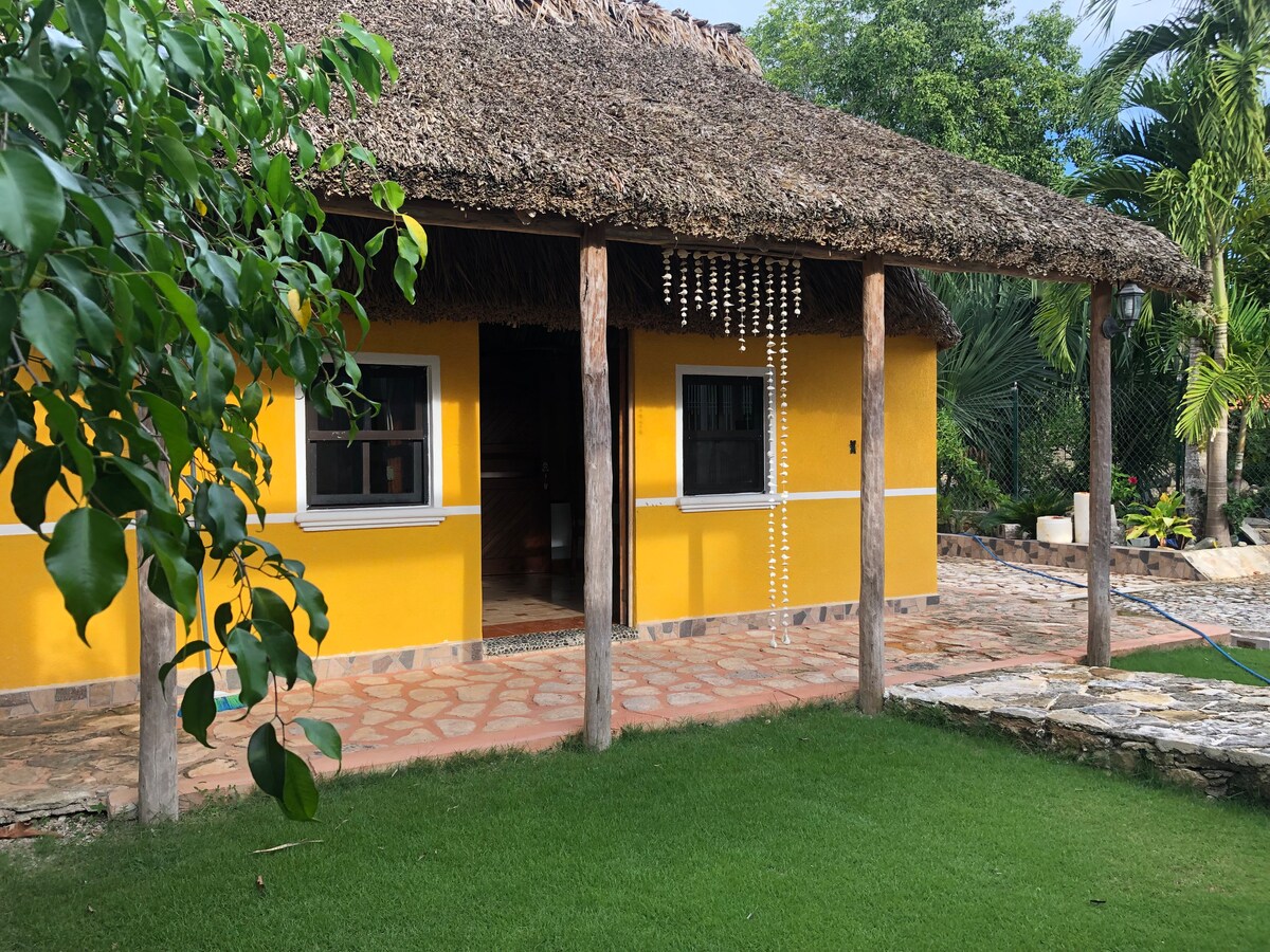 Fáilte go dtí ár dteach teolaí i mBaile Draíochta Valladolid! Táimid 5 nóiméad sa charr ón lár stairiúil agus 3 nóiméad ón Zací cenote. Déanta as coillte cloiche agus trópaiceacha, le taobh istigh fairsing úr, clós lárnach ina bhfuil linn snámha úrnua agus crainn torthaí a chruthaíonn atmaisféar suaimhneach. Leaba rímhéide, A/C sa seomra, tobán folctha le huisce te, Wi - Fi, cistin fheistithe, linn snámha ar fáil 24/7. Déan iniúchadh ar an áit fhoirfe do d'fhanacht, in Sureña!