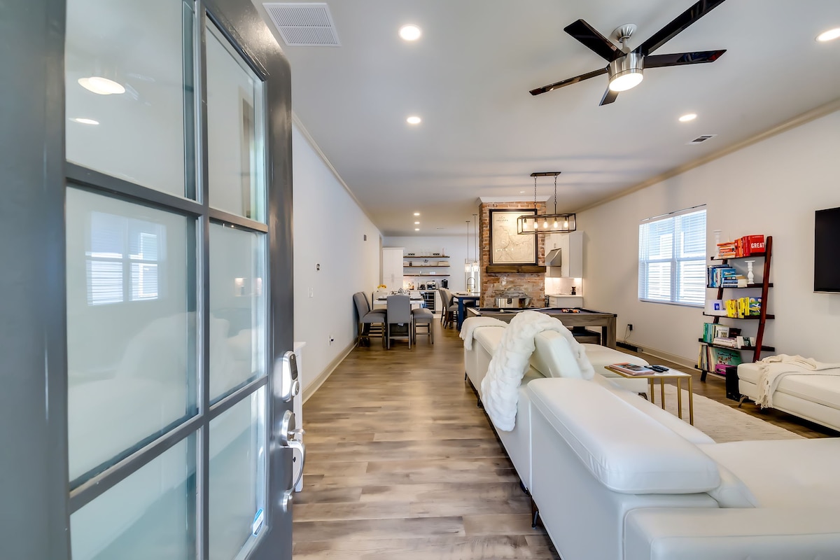 Tá an t - árasán Feidhmiúcháin Corr seo le fanacht foirfe do thurais ghrúpa, tá sé suite i dteach Truist Park na Braves agus siúlóid éasca 5 nóiméad go dtí an Coca Cola Roxy. Le linn d'fhanachta, beidh tú ar do shuaimhneas i leaba ollmhór ar mhéid an Rí, tá an chistin feistithe go hiomlán le gach rud a d'fhéadfadh a bheith ag teastáil uait agus soithí sábháilte do na cinn bheaga. Tá leaba thoilg chompordach de mhéid banríona sa seomra suí fairsing d'aíonna breise, agus radharc álainn ar an loch.