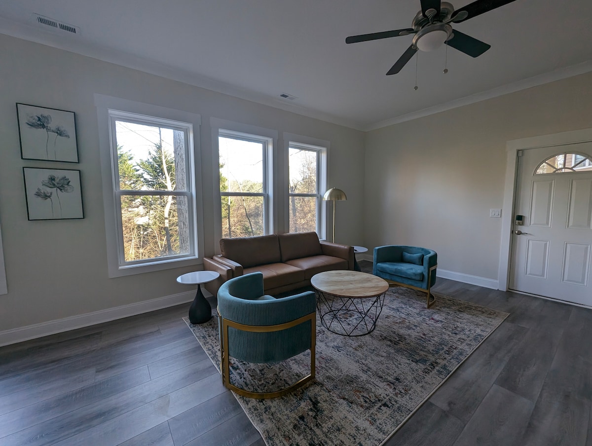 Tá an t - árasán Feidhmiúcháin Corr seo le fanacht foirfe do thurais ghrúpa, tá sé suite i dteach Truist Park na Braves agus siúlóid éasca 5 nóiméad go dtí an Coca Cola Roxy. Le linn d'fhanachta, beidh tú ar do shuaimhneas i leaba ollmhór ar mhéid an Rí, tá an chistin feistithe go hiomlán le gach rud a d'fhéadfadh a bheith ag teastáil uait agus soithí sábháilte do na cinn bheaga. Tá leaba thoilg chompordach de mhéid banríona sa seomra suí fairsing d'aíonna breise, agus radharc álainn ar an loch.