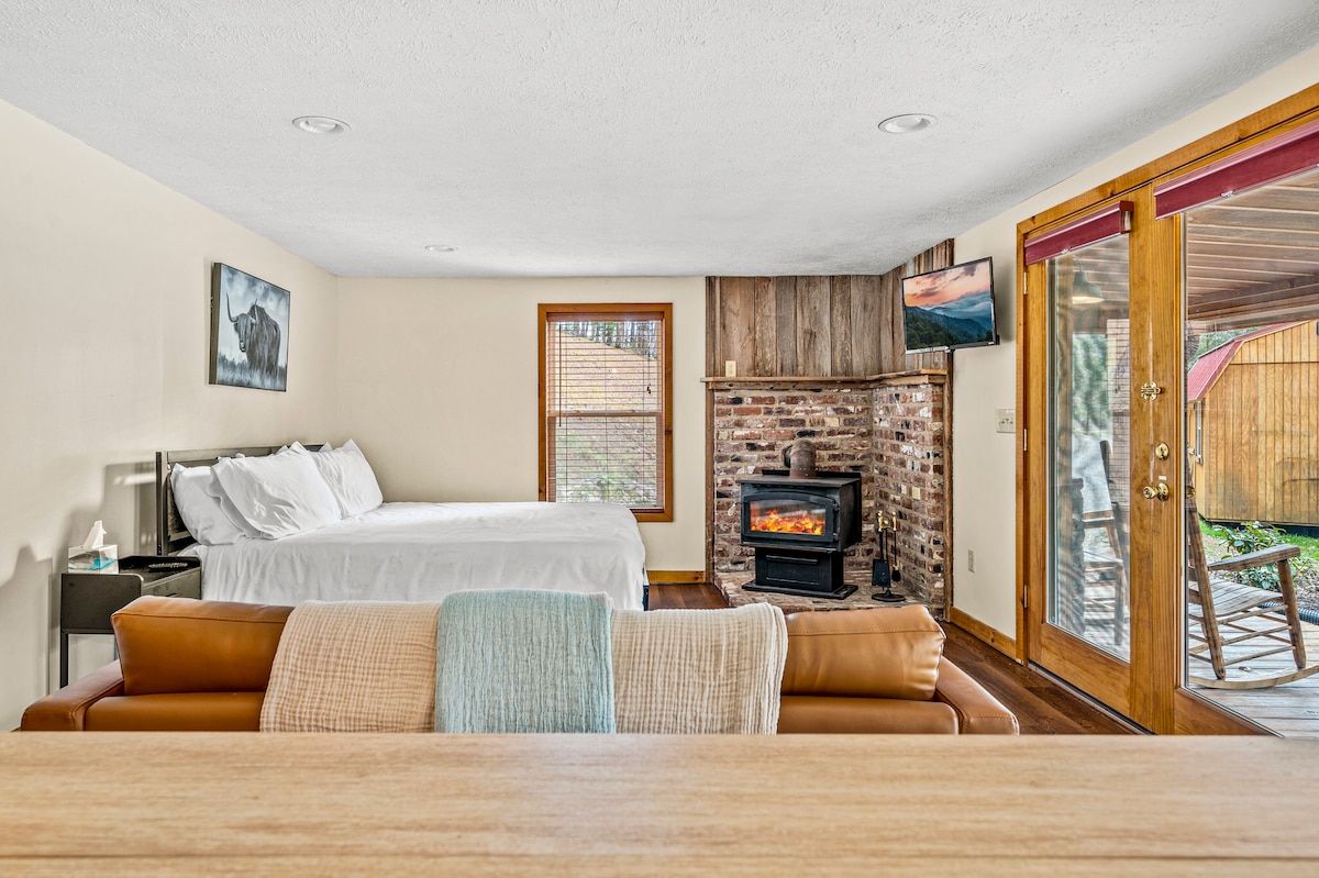 Cábán beag nuathógtha (300 sf) le 1 leaba lánmhéide, atá feistithe go hiomlán le Loveseat, teilifíseán sa seomra leapa agus seomra suí. Tá cuisneoir, doirteal, déantóir caife, greille, breiseán pláta te, rogha bheag earraí cócaireachta, agus gach earra cistine i limistéar na cistine. Má tá tú ag lorg áit chun do scíth a ligean agus taitneamh a bhaint as Radharc an tSléibhe, tá sé seo foirfe. Ní gá ach do éadaí a thabhairt leat. Iarraimid nach n - úsáidfear an teallach ach le linn mhí na Samhna - mí an Mhárta.