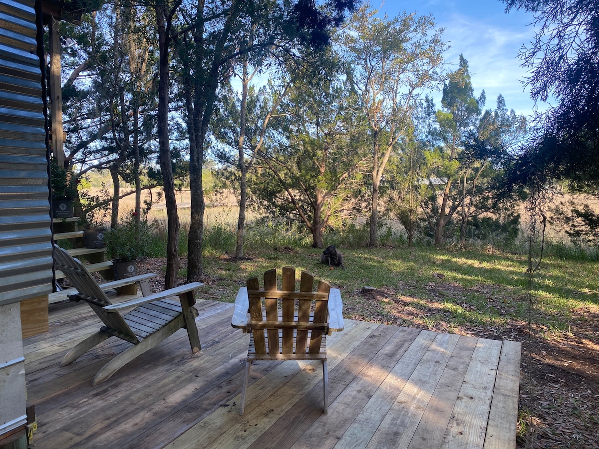 Fáilte chuig do shaoire phríobháideach Savannah. Agus é suite ar Oileán Wilmington, cuireann an bungaló seo atá athmhúnlaithe go hálainn radhairc iontacha ar aghaidh an riasc, éirí síochánta gréine, agus príobháideacht iomlán - ideal ar fáil do lánúineacha nó do thaistealaithe aonair atá ag iarraidh scíth a ligean nó oibriú go cianda i suíomh suaimhneach.