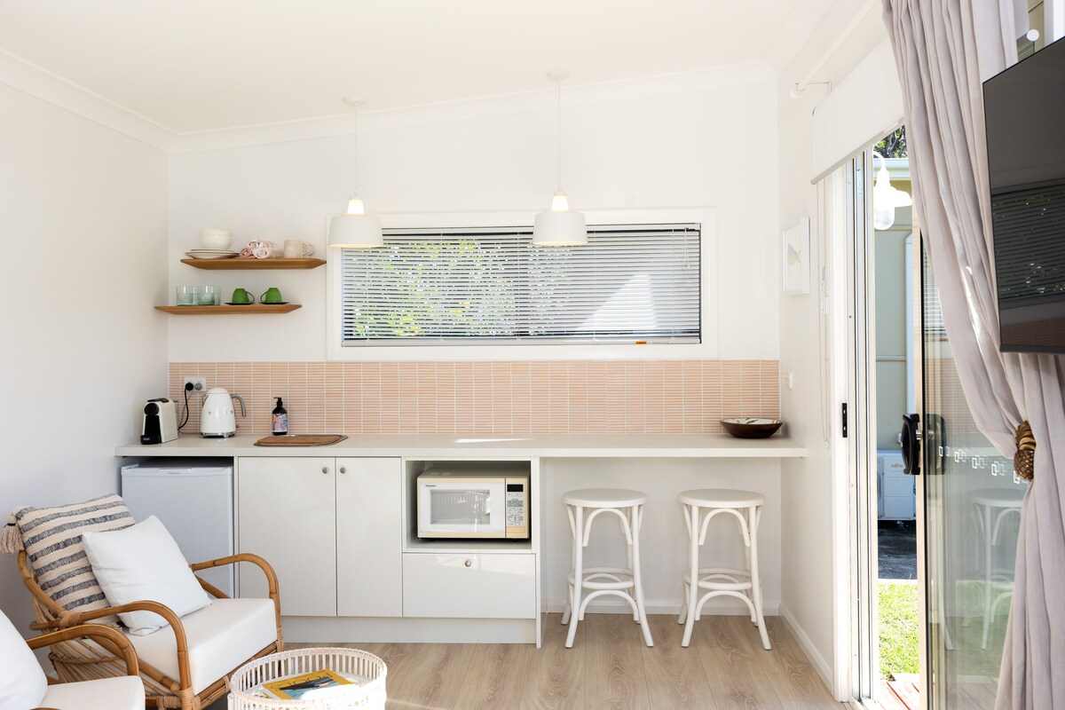 Bain sult as timpeallacht nádúrtha d'fhásach inár gcábán saincheaptha. Cuireann leaba ☁️ cosúil le leaba, folcadán lasmuigh 🛁 & suíomh iontach, spás suaimhneach pearsanta ar fáil chun scíth a ligean agus suaimhneas a dhéanamh ón lá go lá. Turas gairid chuig tránna den scoth, Páirceanna Náisiúnta, Trasnú Shallow agus cuid de na bialanna is fearr ar an gCósta Theas. Vótáilte ar cheann de na saoirí gearra is rómánsúla in NSW sa Daily Telegraph, Liosta Uirbeach agus Clós Súgartha Coincréite. ***Tá dhá chábán ar fáil againn anois ***