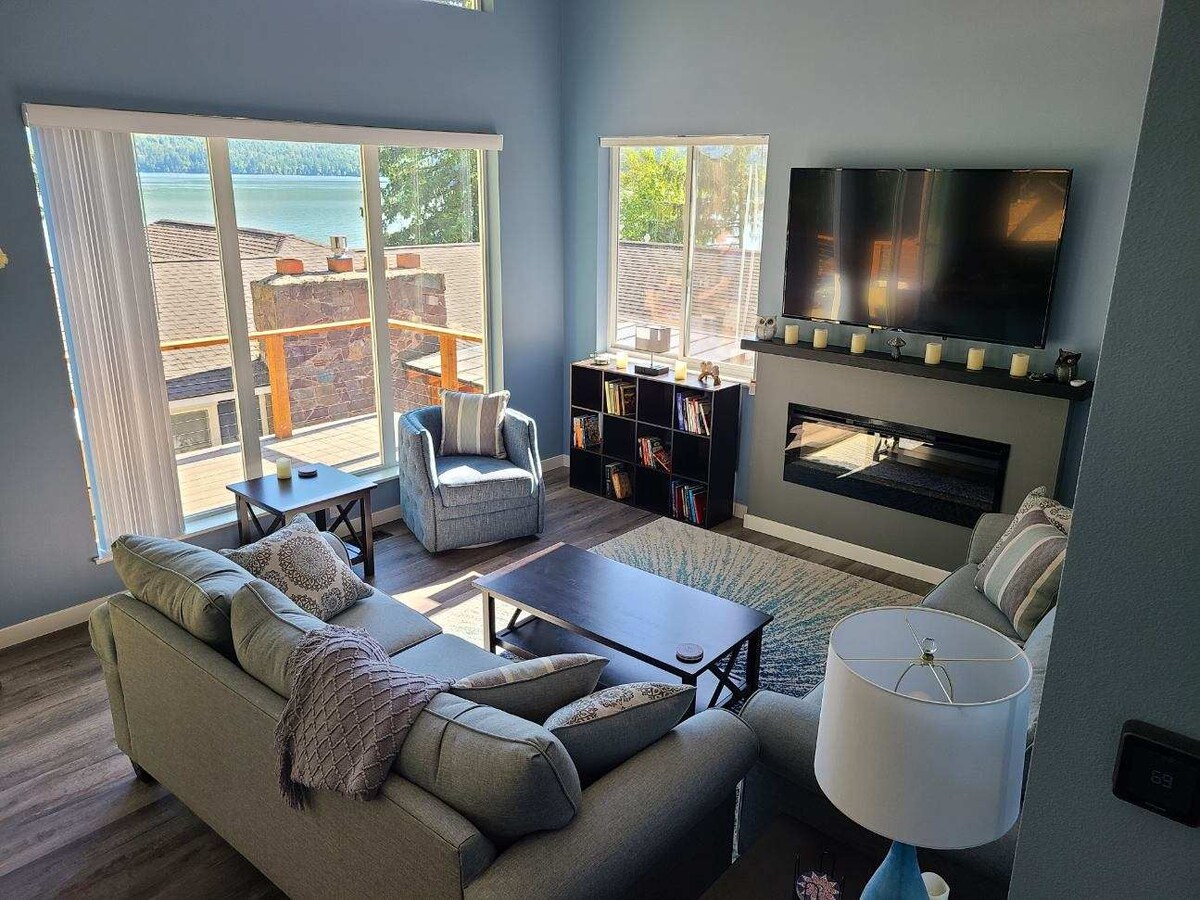 Tearmann teolaí A - Frame, pinned to the top of a rock with spellbinding views of Lake Pend Oreille and the Sandpoint area mountains. Níl ach 4 mhíle ó lár na cathrach agus 5 nóiméad sa charr go dtí an tointeálaí Schweitzer. Is tearmann do lánúineacha é an stiúideo pearsanta seo ina bhfuil lochta. Scaoil isteach leaba de mhéid banríona, ullmhaigh béilí sa chistinéad eibhir, agus bain sult as cithfholcadán saincheaptha ina bhfuil suíochán leithris téite agus bidet. Bain sult as saoráidí nua - aimseartha eile amhail Wi - Fi ardluais agus AC. Deireadh le príobháideacht an bhóthair.