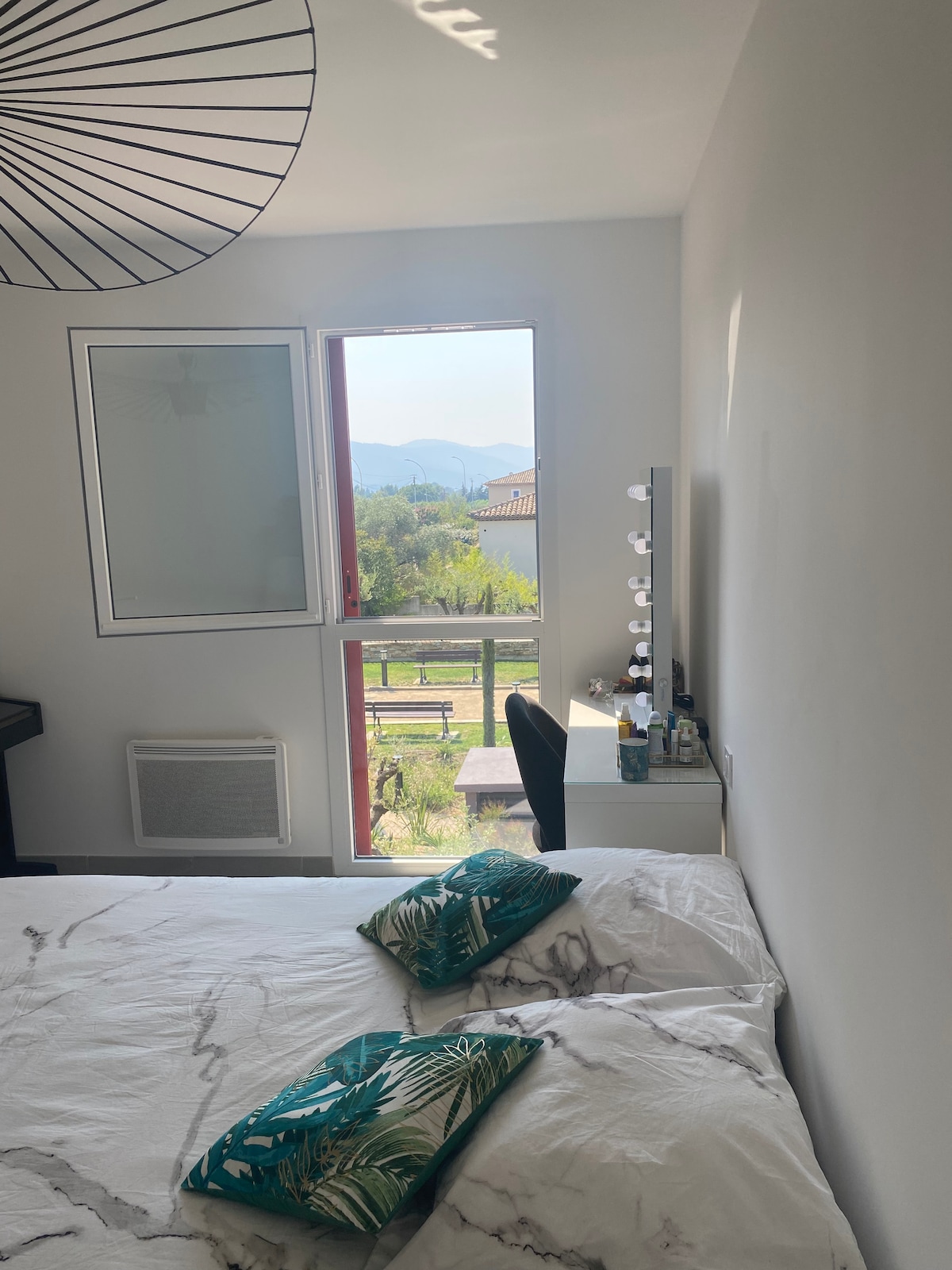 Bain sult as teach galánta agus lárnach. Lonnaithe i lár árasán nua cogolin. Lochtán álainn ar an díon óna bhfuil radhairc ar na sléibhte Féinseiceáil isteach ⛔️Gan torann ná ceol sa tráthnóna Leaba 180 × 200 Caife Nespresso Baile Átha Troim 3 ú seilf Páirceáil saor in aisce neamhphríobháideach sa sráidbhaile Tóstaer Micreathonnán Meaisín níocháin Miasniteoir, 2 theilifíseán Bord gairdín Leapacha gréine Is árasán é seo agus ní seirbhís óstáin. Ní mór duit do bhunriachtanais a thabhairt leat ⛔️🐶
