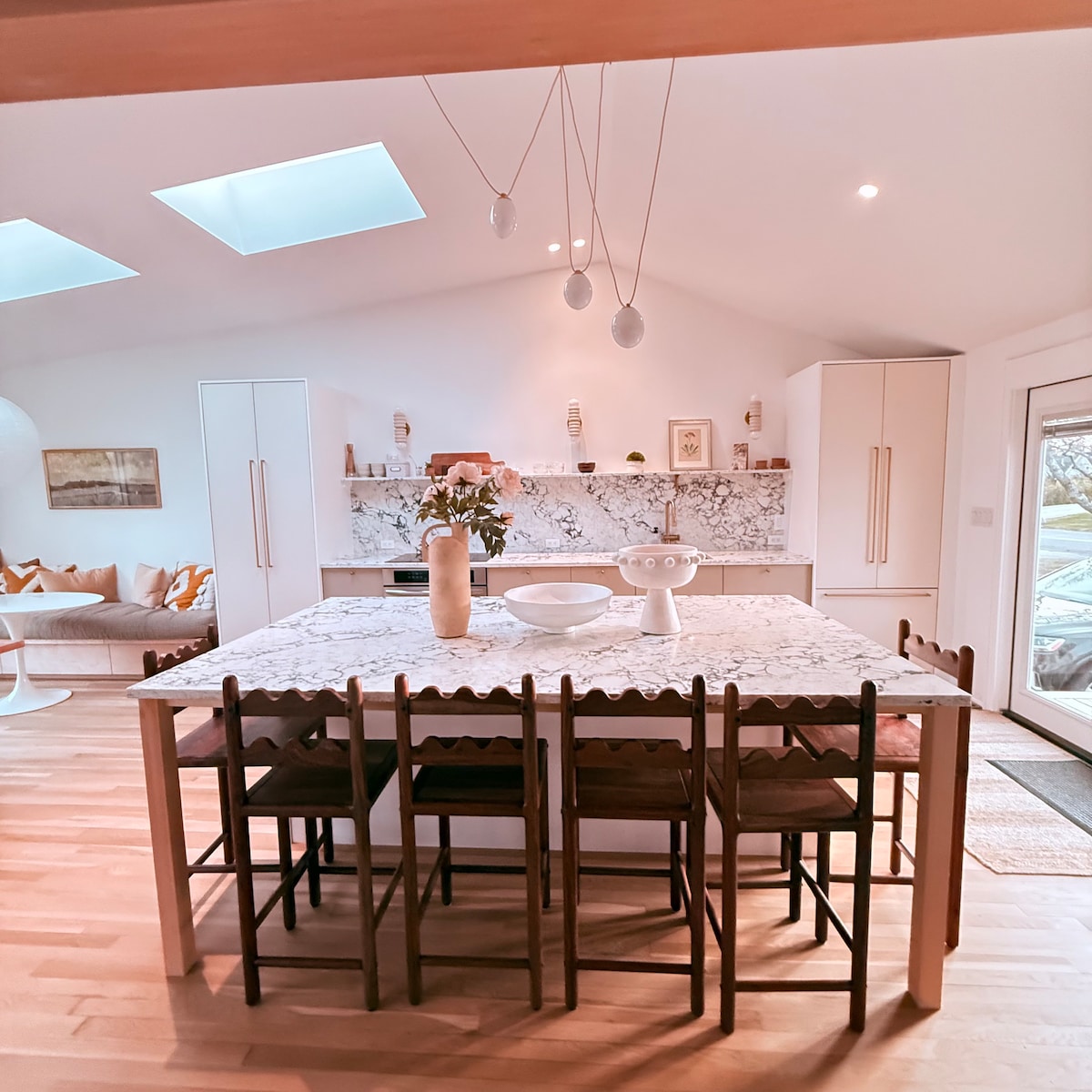 Tar ag spraoi ag The Coastal Cottage. Níl an teach nua - nuashonraithe seo ach nóiméad siúil chuig do thrá phríobháideach agus is é príomhurlár an tí é. Téigh isteach sa seomra suí compordach, le snáithíní boho cois cósta agus tolg mór rannach. Tá leaba Bhanríona i seomra leapa amháin, tá leaba bhuinc lán agus cúpla agus cliabhán sa seomra leapa eile. Bain sult as an gcistin mhór le bord mór bia, cúinne bricfeasta agus oileán ollmhór eibhir. Bain sult as greadadh, an cithfholcadán lasmuigh, nó croch sa chlós é chun do scíth a ligean le do theaghlach agus le cairde.