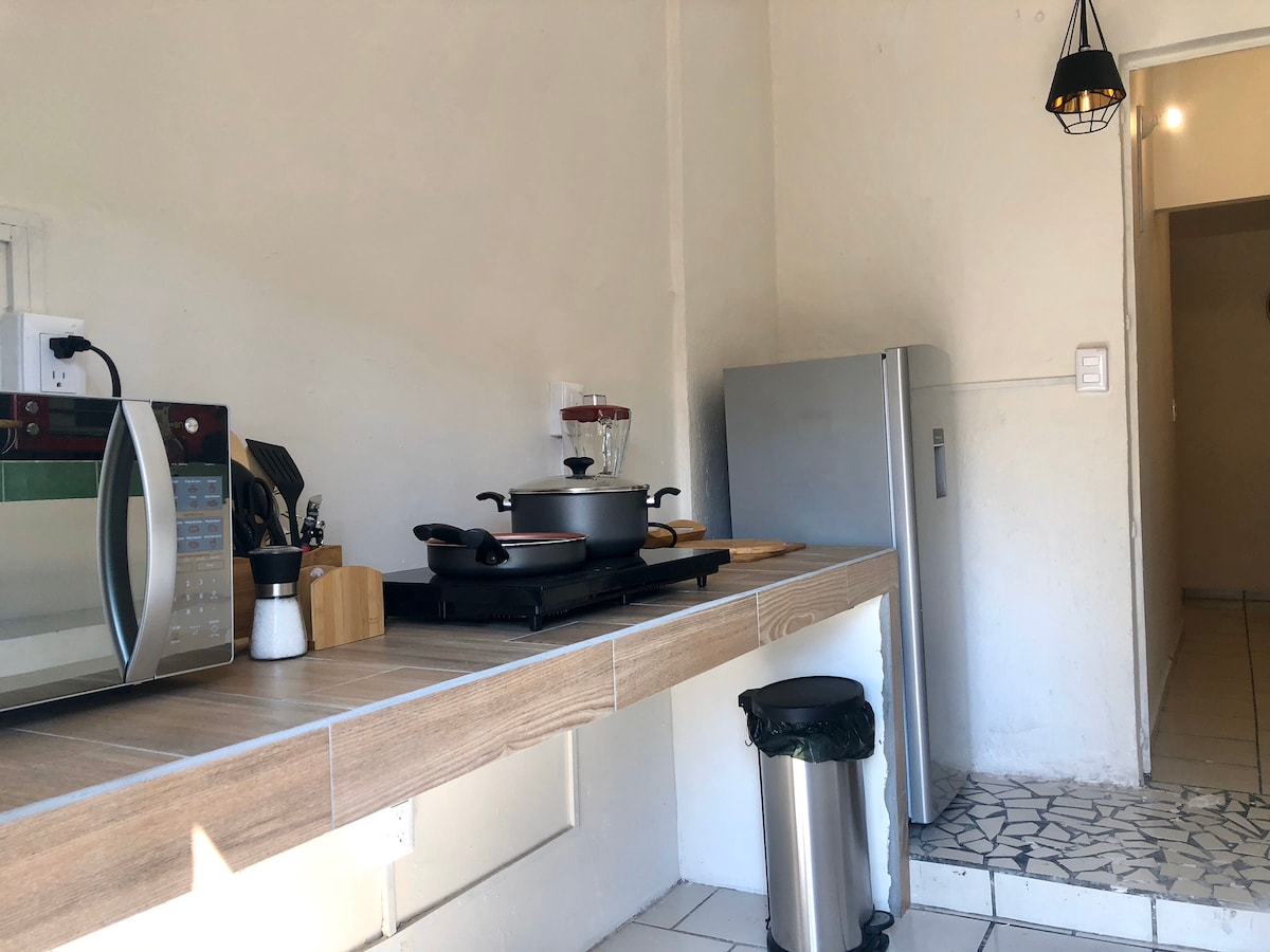 Suite 🏡 ar an mbunurlár | Foirfe do Lánúineacha nó do Thaistealaithe Aonair. Tá leaba rí, aerchóiriú, cistinéad feistithe, seomra folctha iomlán, seomra suí agus lochtán príobháideach ann. Páirceáil laistigh den fhoirgneamh. Suíomh den scoth ar Blvd. Camino Real, in aice le hOllscoil Colima, oifigí rialtais, ospidéil agus áiteanna siopadóireachta. Compordach, praiticiúil agus foirfe chun scíth a ligean nó obair a dhéanamh. Cibé acu oíche amháin nó fanacht fada atá i gceist, gheobhaidh tú an scíth a theastaíonn uait anseo.