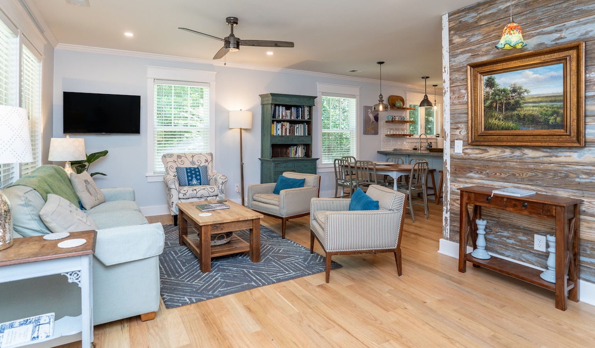 Only a short walk from Beaufort’s thriving waterfront and a quick drive to the downtown restaurants/shops/art district and Spanish Moss Trail, our light filled, cozy cottage is designed with your comfort and relaxation in mind. In the heart of the Historic district, enjoy coffee on the back deck, unwind by the fire pit, or simply relax inside - it's the perfect spot to call home after exploring the SC beaches/parks with our complimentary beach pass. Ideal for families, couples and small groups!