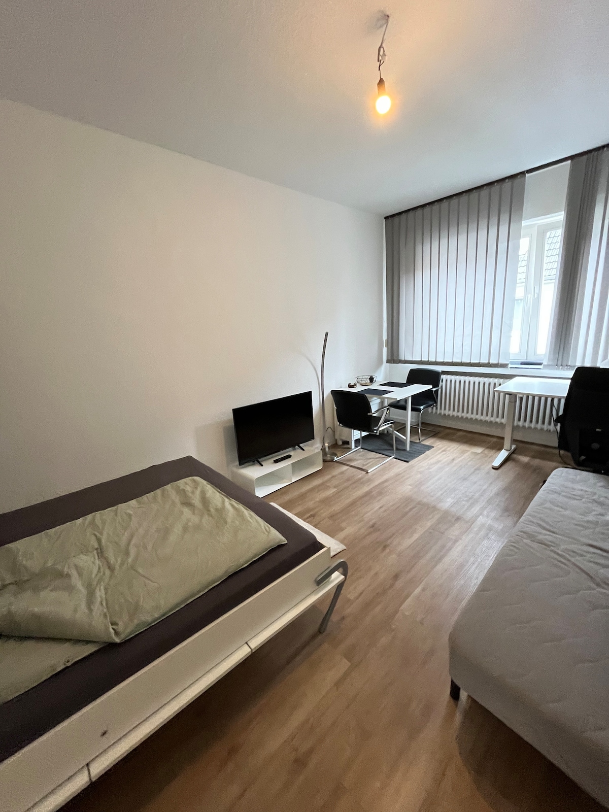 Sunny, exclusive 1-room apartment in Cologne city center for 1-2 people; open floor plan, underfloor heating, comfortable bed (1.40 x 2m), stylish living area, kitchen, high-quality built-in furniture; modern bathroom design with daylight / exclusive furnishings; high-speed WiFi up to 100 mbit/sec; elaborate lighting design 3 min. to the shopping streets, restaurants and bars on the doorstep, 800 meters to the cathedral, freeway A57 by car in 5 min. Bookings of 90 days or more on request.