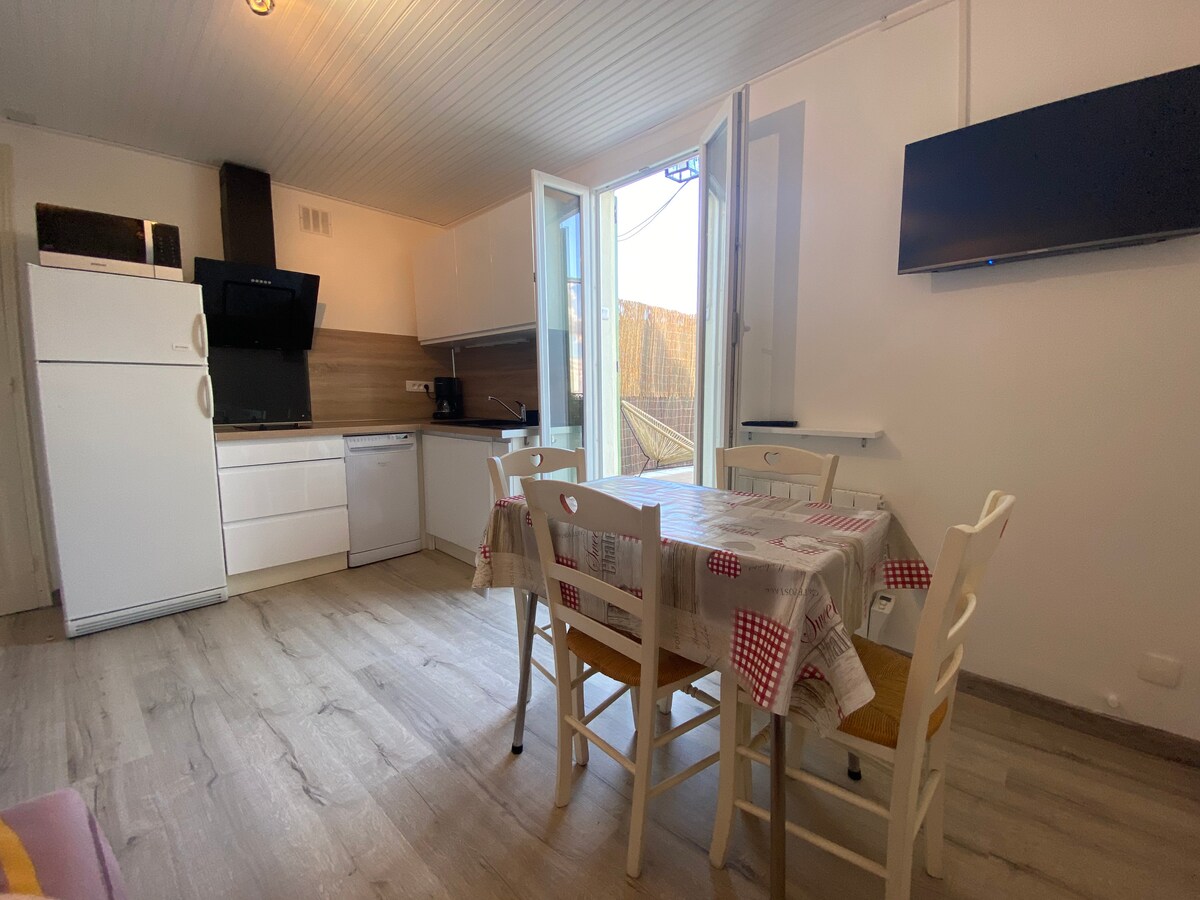 Suite 20 nóiméad ón bhfarraige agus 45 nóiméad ón sliabh, Árasán an - deas de 45 m² thíos staighre den villa ar feadh nóiméad suaimhneach i síocháin. Ardán mór príobháideach le troscán gairdín agus bord bia chun taitneamh a bhaint as luí na gréine agus binneas an réigiúin. Ón 1 Bealtaine go dtí an 15 Meán Fómhair, is féidir leat taitneamh a bhaint as an linn snámha, mar aon le beárbaiciú, oigheann píotsa agus cúirt boules. Tá cathaoireacha deice ar fáil freisin chun do tan a fhoirfeú. Tá spás páirceála ar an réadmhaoin ar fáil.