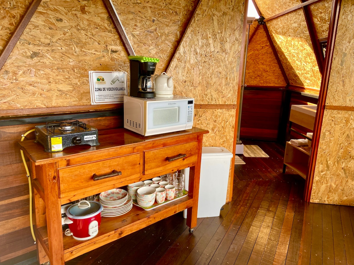 Ceangail leis an dúlra ar an saoire ghearr dhodhearmadta seo nach bhfuil ach 10 nóiméad ar shiúl ó bhaile álainn Filandia, Quindío. Spás eisiach deartha agus ar fhreastail a úinéirí air. Tá leaba Rí, seomra folctha príobháideach atá comhtháite sa seomra le cithfholcadán te, troscán ardchompord, limistéar casóige, ardán agus limistéar machnaimh inár glampáil. Radhairc lánléargais iontacha, atmaisféar rómánsúil chun scíth a ligean agus taitneamh a bhaint as mar lánúin.