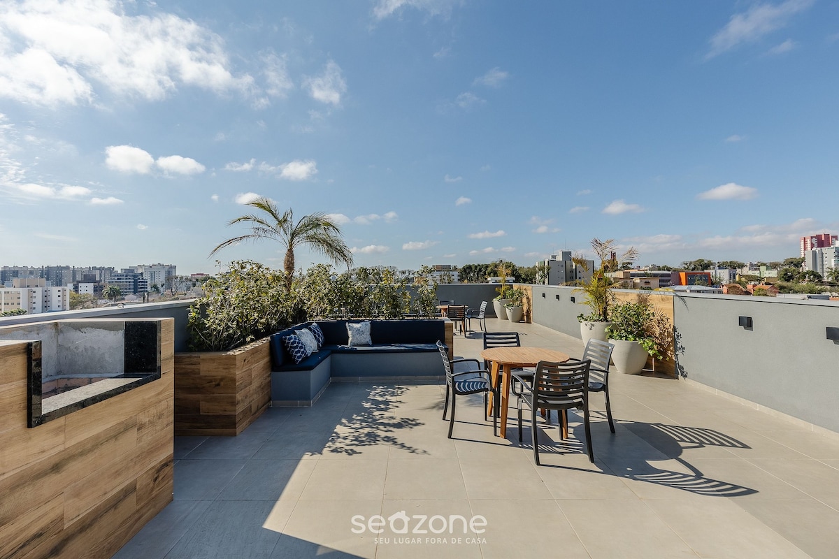 Modern and functional apartment for medium- and long-term stays, business trips, etc. - Located in the Boa Vista neighborhood, with easy access to markets and restaurants - Includes a covered parking space. Please note: Quiet hours are from 10 pm to 8 am. This is a family-friendly and residential environment, subject to fines for disturbing the peace. - Queen-size bed, equipped kitchen - Dining table/home office - Private bathroom - 32" Smart TV with streaming services - Electric stove
