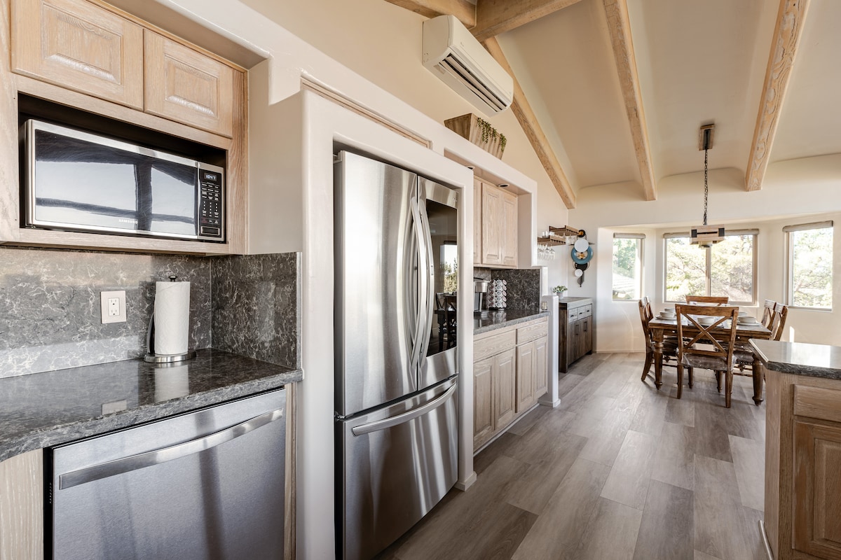 Tá an teach álainn seo suite díreach amach ó Bhóthar an Aerfoirt leis na radhairc, an phríobháideacht, solas na gréine agus riachtanais scíthe d'aon ghrúpa Beag nó Mór le go mbeidh tú ar do chompord agus aire mhaith á tabhairt dóibh! Tá sé díreach isteach idir Uptown agus Downtown Sedona, rud a thugann rochtain fhoirfe duit ar gach rud le feiceáil agus le déanamh laistigh de nóiméid i ngach treo. Suíomh Foirfe! Anáil ag cur tuairimí!