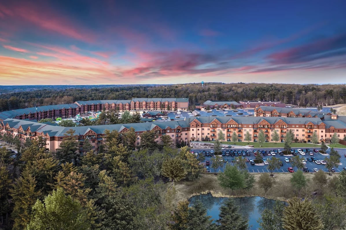 Discover rustic charm at Glacier Canyon, where timber furniture and stacked stone create a cozy lodge-like feel with modern accessories. Step outside to enjoy nine water parks and four arcades or explore nearby attractions like wineries, casinos, golf courses, wildlife parks, hiking trails, and family fun activities such as zip-lining and go-karts. With the Outlets at the Dells just five minutes away for shopping and dining, this resort is perfect for an unforgettable getaway!