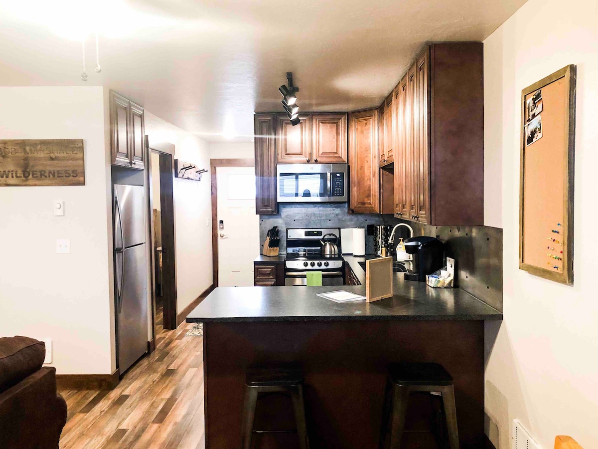 Stíl nua - aimseartha, deireadh ard (Nua - Eabhrac) 1 seomra leapa, 1 árasán seomra folctha i lár an bhaile Whitefish. Tá leaba rí sa seomra leapa. Tolg Codlata (tocht aeir lánmhéide ar bharr tochta rialta le haghaidh compord breise) sa seomra suí is féidir árasán a chodladh 4. Cuntair eibhir, urláir tíleanna téite sa seomra folctha, teilifís chliste (Netflix san áireamh) sa seomra leapa & sa seomra suí. Fuinneog AC i rith an tsamhraidh. Wi - Fi saor in aisce.
