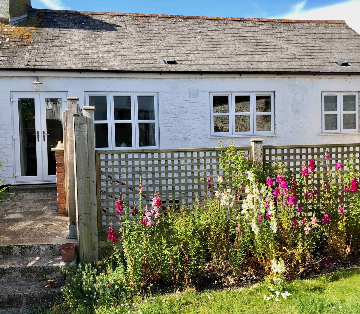 Teachín & gairdíní ceann tuí áille nr Lyme Regis