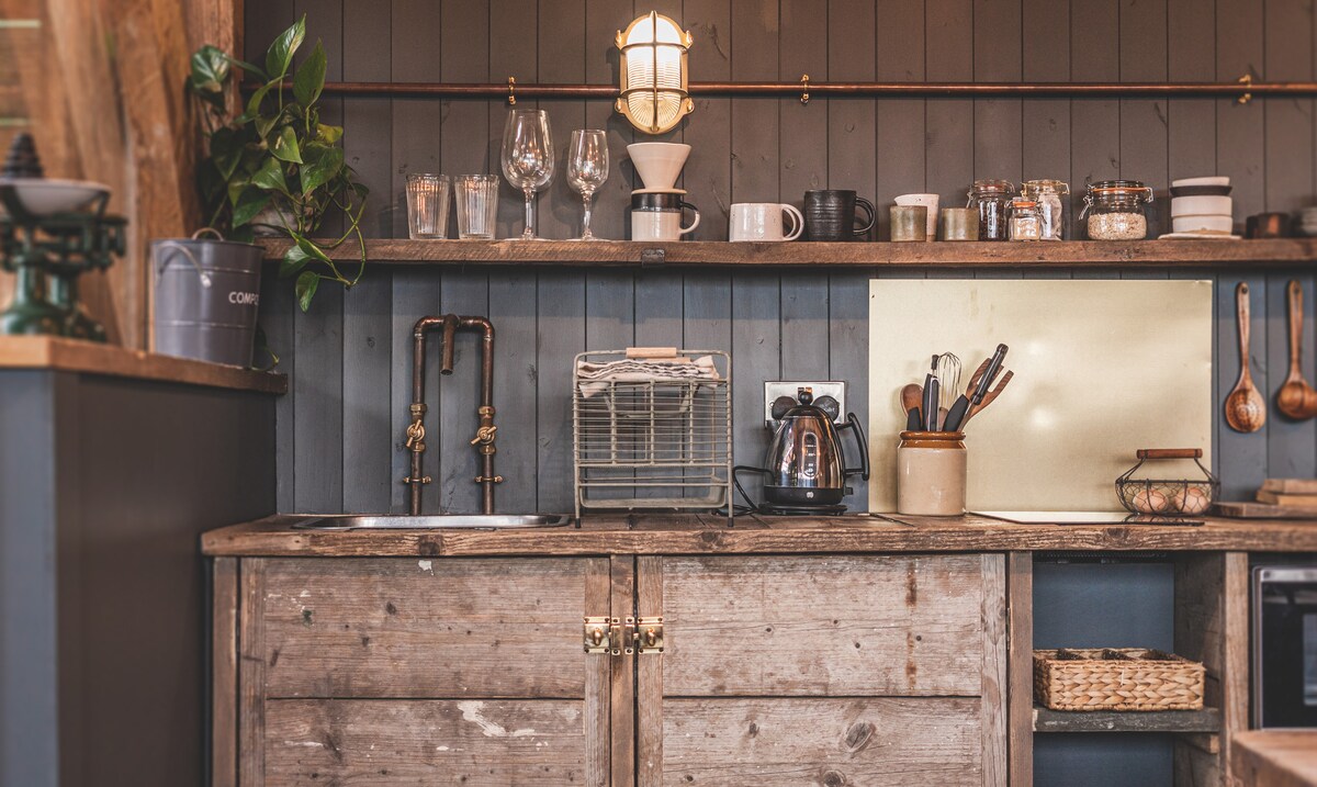Spás socair, an - sómasach le hathluchtú agus athcheangal a dhéanamh. Is scioból bó a tiontaíodh go cúramach é an Shippon le hurláir choincréite téite, ballaí glasa cuartha go réidh, cistin lámh - thógtha, nooks léitheoireachta te, & ábhair nádúrtha. Plaincéid Woollen, tolg cleite, dóire loga seanda Lochlannach, leaba rí - mhéid le línéadach na Fraince & síos, cithfholcadán easa, & na tuáillí is boga. Is é ár gráig Devon sleepy lit ach amháin ag réaltaí san oíche. D'fhéadfá codladh níos fearr ná mar atá agat le blianta beaga anuas.