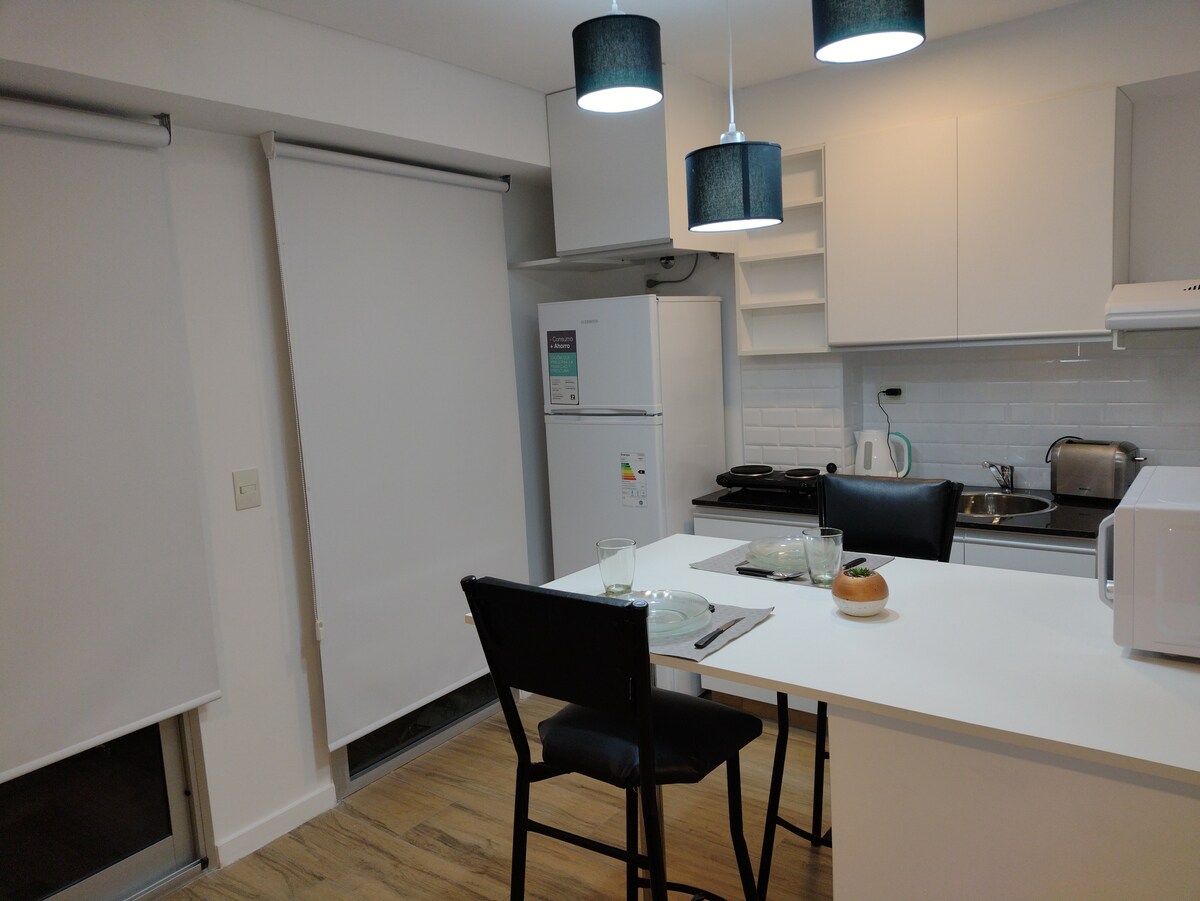 Stiúideo mór fairsing do 2 dhuine le hardán iontach, seomra suí, spás itheacháin agus limistéar scartha codlata, closets, seomra folctha iomlán agus cistin scartha le fearais, earraí cócaireachta agus uirlisí freastail, seomra suí compordach agus limistéar itheacháin, cothabháil agus maisithe go maith. Glanadh seachtainiúil lena n - áirítear braillíní agus tuáillí. Achar siúil, díreach 3 bhloc go dtí an líne subway A, tógann sé 15 nóiméad go lár an bhaile, Plaza de Mayo 24 km go Ezeiza 11 Km go Aeroparque NÍ GHLACAIMID LE LEANAÍ