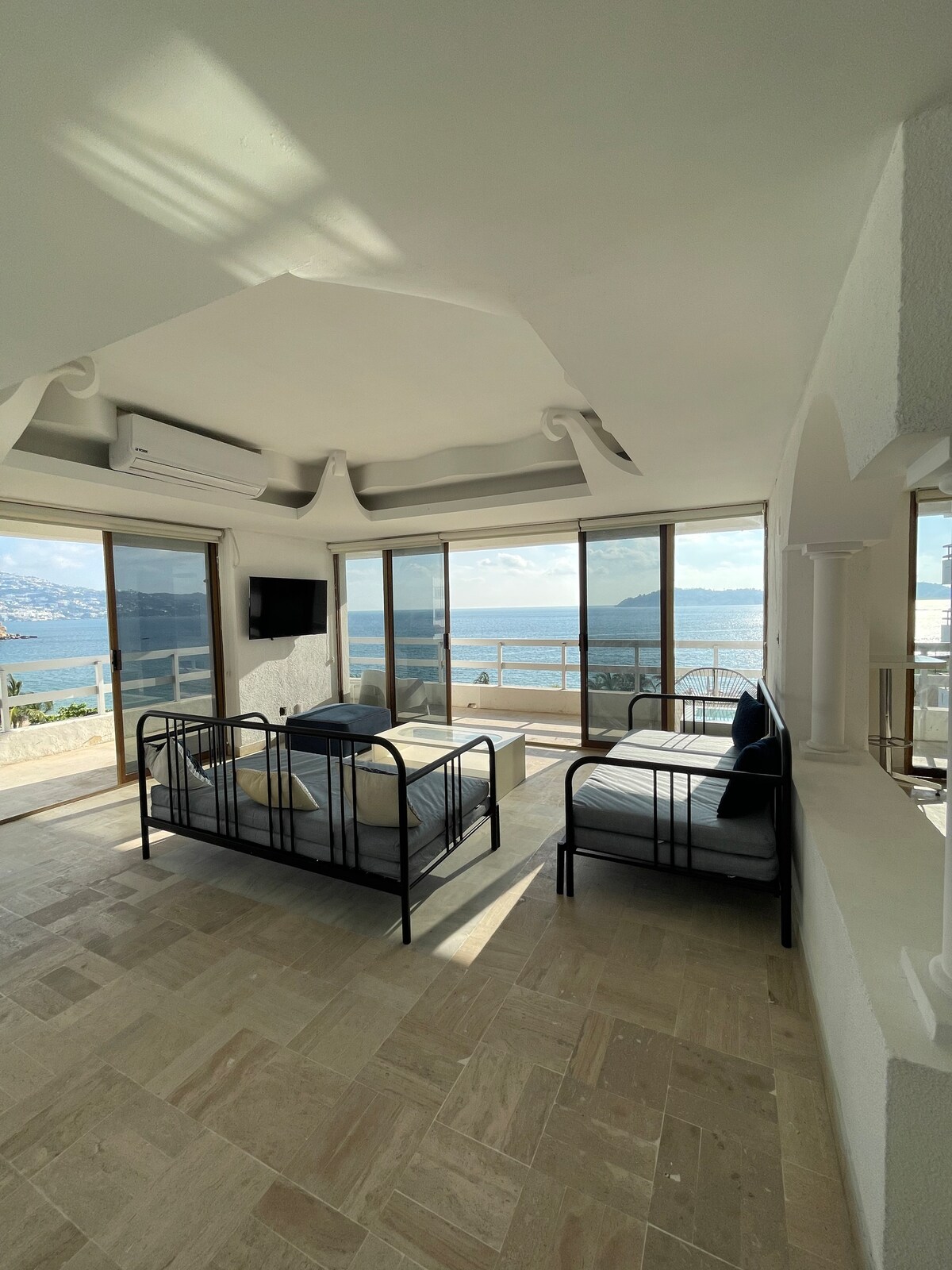 Athchóirithe go hiomlán tar éis Otis: Villa bán taibhseach i stíl shuaimhneach, trá le sonraí ceardaíochta Mheicsiceo. Linn snámha phríobháideach, 3 sheomra leapa aerchóirithe, 2 stiúideo, seomra suí agus bia, agus radharc iomlán acu go léir ar an Aigéan Ciúin. Teacht i gcarr molta go hard, tá 2 áit pháirceála ar fáil. Teach club le linn snámha mór, sabhna, giomnáisiam. Glantachán san áireamh, seirbhís chócaireachta ar fáil ar iarratas. Slándáil 24h. Cosán reatha/siúlóide ar fáil trí Brisas, le radhairc thar bhá Acapulco.