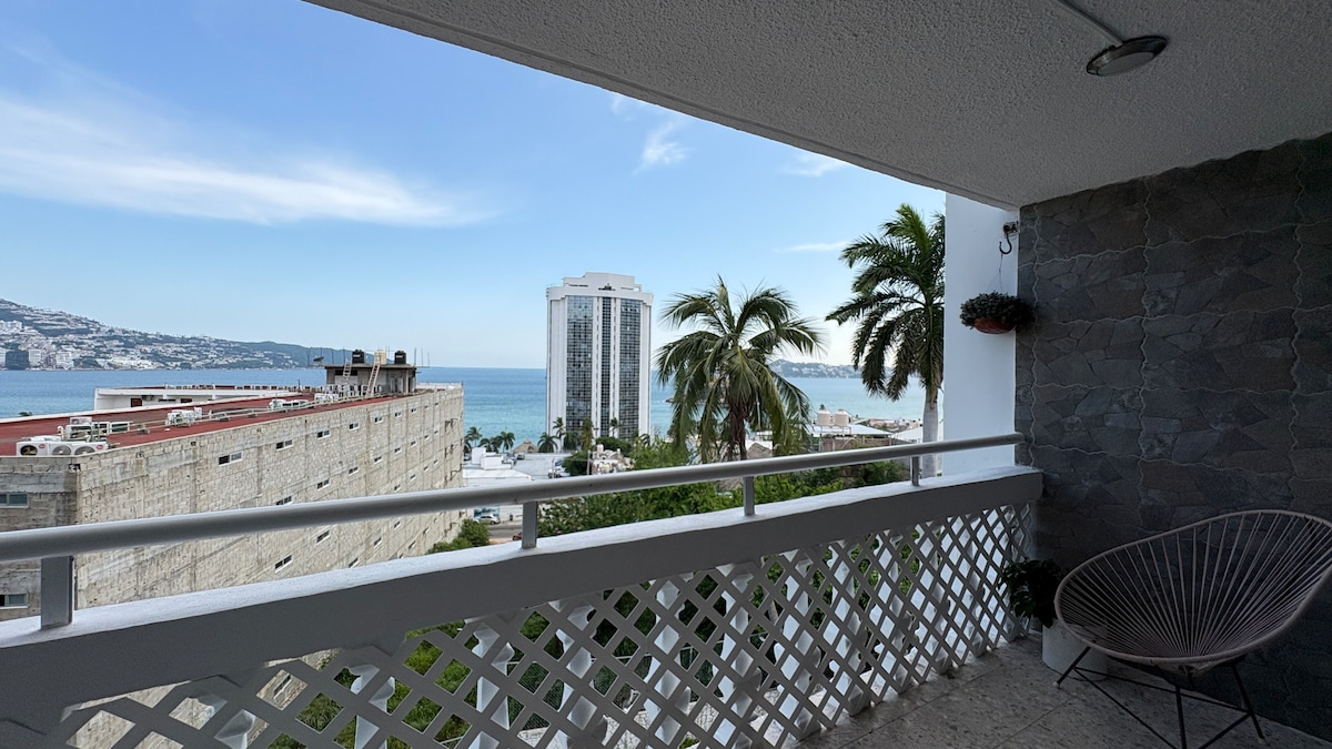 Bonito departamento nuevo, a una cuadra de la playa condesa, cerca de restaurantes y bares, recomendado para vacacionar con familia o amigos, cuenta con clima en todo el departamento, sala, cocina y en habitaciones, con una hermosa vista a la bahía de Acapulco. Ideal para celebrar año nuevo y no perderte de los fuegos pirotécnicos🎆🎇 desde la comodidad de tu alojamiento