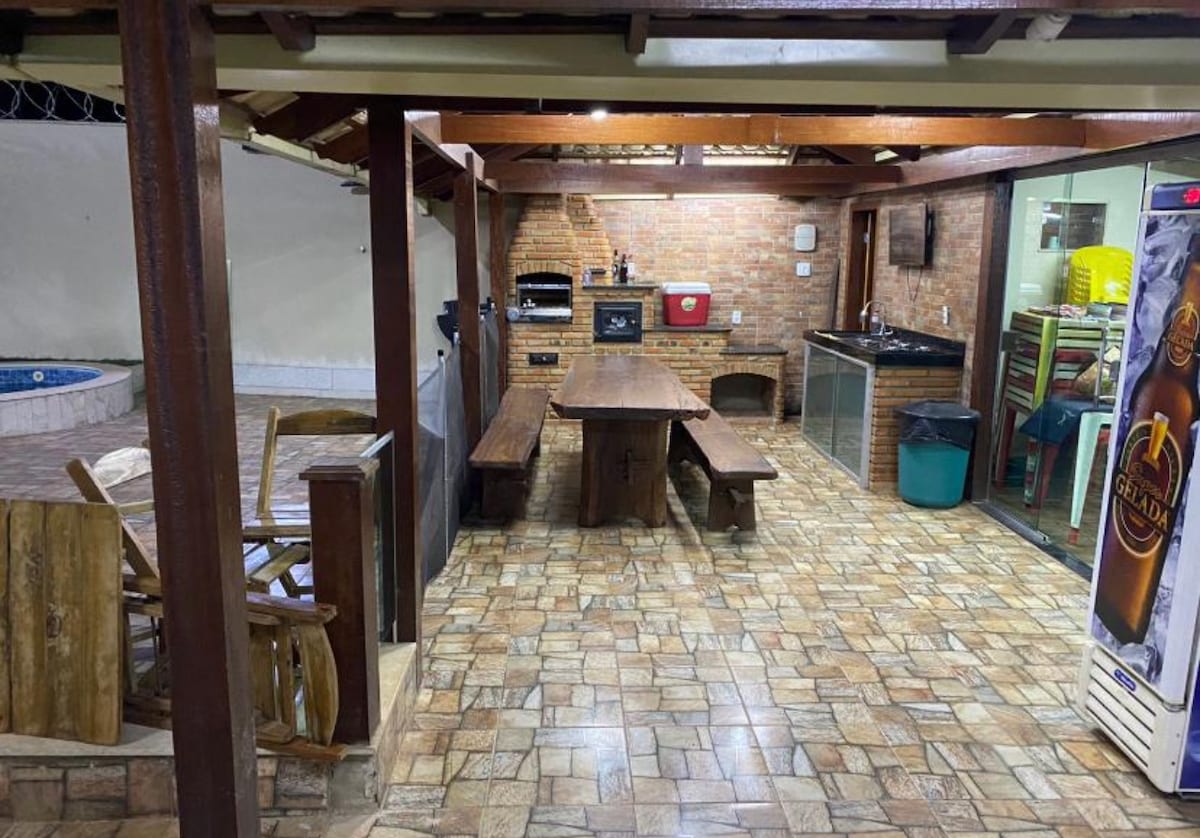 Teachín atá suite 20 nóiméad ón zú dE BH agus zú Pampulha. Tá 2,000 m2 de shuaimhneas agus fóillíocht íon ann. Lig do scíth leis an teaghlach ar fad sa teach seo. Svuít le HAERCHÓIRIÚ!l Jacuzzi do 6 dhuine. Aird ar an seoladh: Tá ár dteach suite sa Condomínio Fechado Encosta do Salto, atá suite i gceantar tuaithe ina bhfuil suíomh agus rochtain éasca, an - sábháilte. Tá uirlisí tí nua sa teach go léir. Chomh maith le beárbaiciú gourmet agus teallach. ** Ní ghlacaimid le cóisirí ná le cuairteoirí.