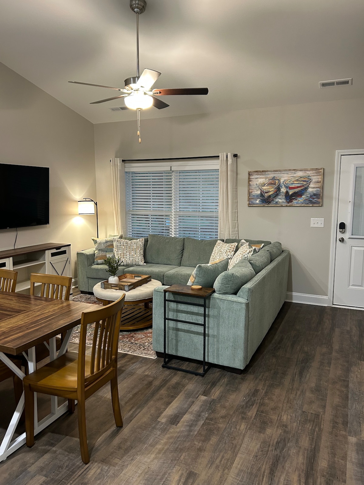 Tá an teach iontach boho - chic seo réidh chun tú féin agus do theaghlach a óstáil! Beidh tú ag siúl achar go lár Conway áit ar féidir leat taitneamh a bhaint as bialanna, siopaí, Amharclann na Poblachta agus Siúlóid na hAbhann! Níl ach 17 míle go Myrtle Beach agus 5 mhíle go dtí Ollscoil Coastal Carolina. Beidh rochtain agat ar an teach iomlán lena n - áirítear áit chónaithe oscailte ina bhfuil leaba thoilg banríona, cistin ina bhfuil stoc iomlán, trí sheomra leapa, dhá sheomra folctha iomlána agus seomra níocháin. Ní féidir linn fanacht go bhfuil tú!
