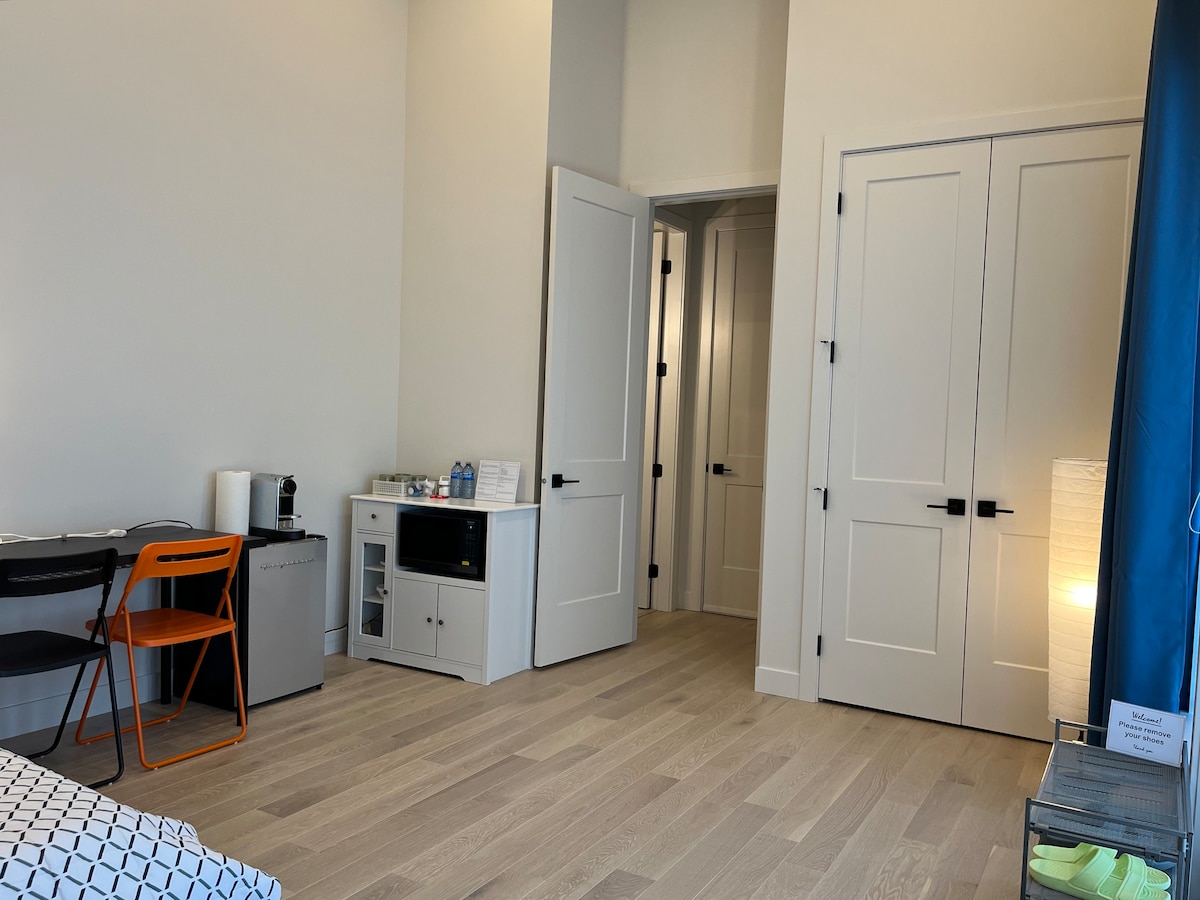 Is breá le haíonna ár dteach atá sa 5% is fearr: glan lonrach, dea-dheartha agus thar a bheith compordach. Svuít i stíl boutique le síleálacha arda, leaba rí sómasach agus compord níos fearr ná fanacht in óstán. Bain sult as seomra suí grianmhar, seomra níocháin en suite, Wi-Fi 1G, teilifíseán cliste 52" ar a bhfuil Netflix, caife agus tae saor in aisce, bealach isteach príobháideach agus páirceáil saor in aisce. Téamh teirmeastait agus fuar go nádúrtha sa samhradh. Siúil go dtí an t-iompar poiblí, páirceanna agus cosáin; turas gairid sa charr go dtí áiteanna siopadóireachta. Foirfe do lánúineacha, do theaghlaigh, do dhaoine atá ina n-aonar nó do thréimhsí fanachta gnó.