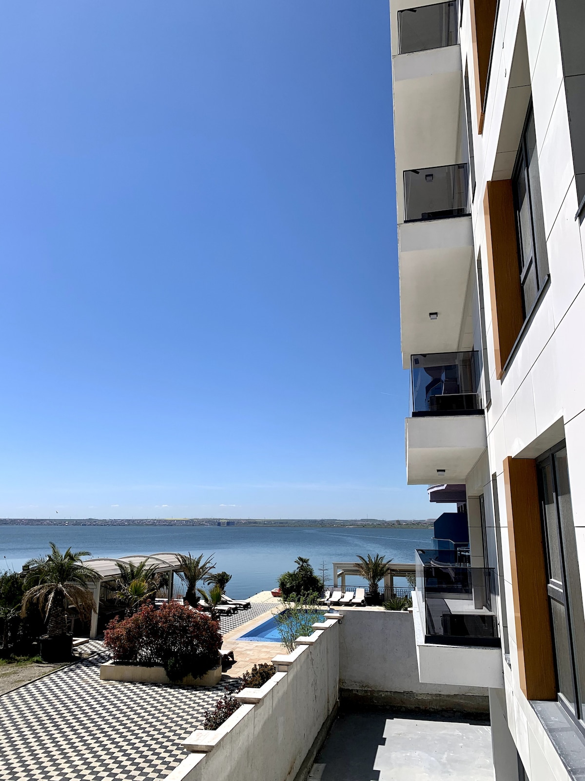 Níl sé ach 200 méadar ó thránna gainimh na Mara Duibhe, tá lóistín aerchóirithe ar fáil san árasán le hardán, in Mamaia. Tá ardán ollmhór san árasán le radharc iontach ar Loch Siutghiol. Gach tráthnóna is féidir leat taitneamh a bhaint as luí na gréine taibhseach. In aice le mionmhargaí, bialanna, cógaslanna, beáir trá, agus stadanna bus. Tá an t - árasán feistithe go hiomlán le gach rud a d'fhéadfadh a bheith ag teastáil uait ar saoire shuaimhneach. Cuirtear páirceáil phríobháideach ar fáil saor in aisce freisin.