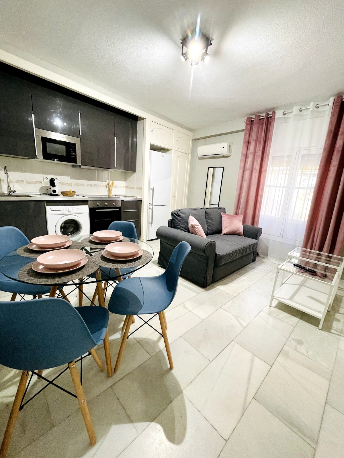 Teach neamhspleách, sin vecino, athchóirithe as an nua in 2023. Lonnaithe ar bhruach an Rio Guadalquivir, tá suíomh den scoth ann, laistigh de lár stairiúil na cathrach, le balcóin sa phríomhsheomra. 1 nóiméad ó shráid na mbialann 8 nóiméad siúil ó Mhosc na hArdeaglaise. 1 nóiméad ó Pháirceáil La Ribera.