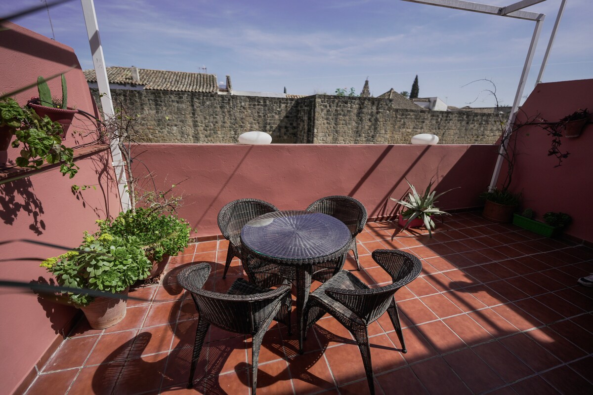 Bain sult as teach deartha ina bhfuil na saoráidí go léir. Tá an t - árasán nua - athchóirithe seo díreach amach ón Mezquita agus cúpla méadar ar shiúl ó Dhroichead na Róimhe. Gabhann radhairc eisiacha ar mhosc agus ar Guadalquivir thú ón ardán ollmhór dín comhchoiteann. Treoracha chuig an doras. Páirceáil in aice láimhe.