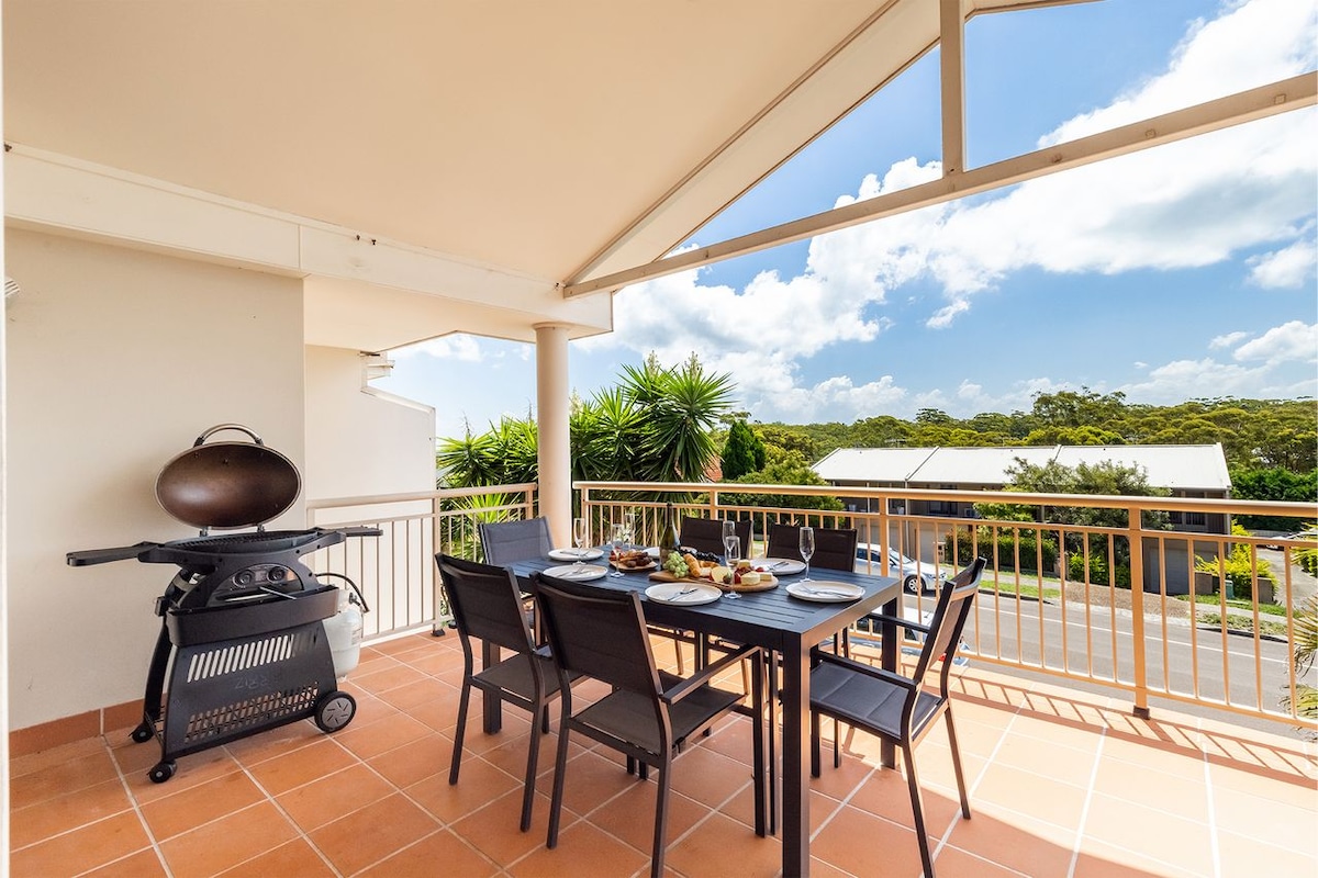 Tá cistinéad lánfheistithe san árasán aoi nua - aimseartha seo, a bhfuil a phaitió féin feistithe go hiomlán le beárbaiciú agus bealach isteach príobháideach suite i cul - de - sac ciúin i mBá Nelson, Port Stephens. Bain sult as an suaimhneas, agus gan ach cúpla nóiméad ó chroílár Bhá Nelson a bhfuil caiféanna, bialanna, siopaí agus siamsaíocht éagsúla ann. Cuireann Port Stephens go leor gníomhaíochtaí agus radharcanna ar fáil ó shiúlóid coille, faire deilfeanna/míolta móra agus tránna iontacha.