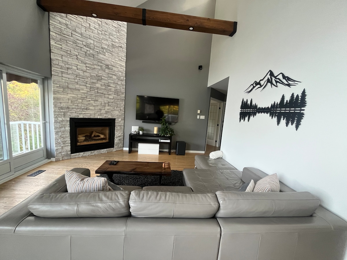 Déan áirithint anois chun do thrá ghainmheach phríobháideach a chur in áirithe! Cuireann an teach álainn seo gach rud atá uait ar fáil. Ith bricfeasta ar an mbalcóin ag breathnú amach ar an loch, caith do lá ar an uisce, agus bain sult as luí na gréine ar an deic, agus roinnt ama rómánsúil le tine ina dhiaidh sin, laistigh nó lasmuigh. Táimid suite thart ar 15 nóiméad ó ionad sciála agus gailf Edelweiss agus 40 nóiméad ó Ottawa. Cinnteoidh an t - idirlíon Bell Mega fibe (1.5 G) go mbeidh tú in ann oibriú ó chian, mura bhfuil tú ró - shuaimhneach chuige sin!