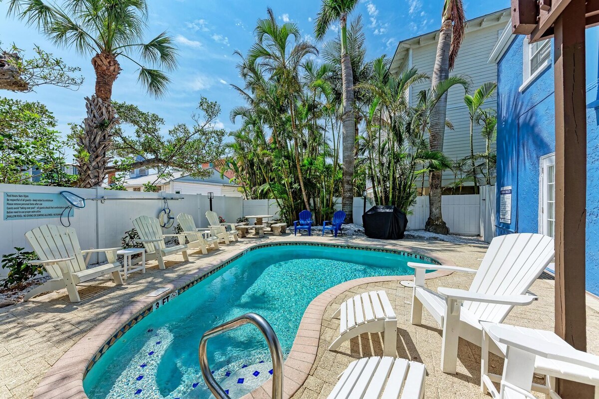 Bloc amháin ó bhia álainn cois trá agus cois uisce. Villa nua - athchóirithe i bhfoirgneamh gleoite ciúin árasán gar do gach rud ar Oileán Anna Maria. Pickleball trasna na sráide. Linn snámha go litriúil amach do dhoras cúil. Foirfe do theaghlach beag nó do shaoire rómánsúil. * Íosmhéidar cíos 25 bliana d'aois. Siúlóid dhá nóiméad go dtí an trá, siopaí faiseanta Sráid an Droichid, muiríne, bialanna, beáir, turais bháid, mionghalf agus eile. Leapacha, troscán & fearais úrnua. Tá gach rud atá uait sa chistin. Soláthairtí trá i gcófra halla.