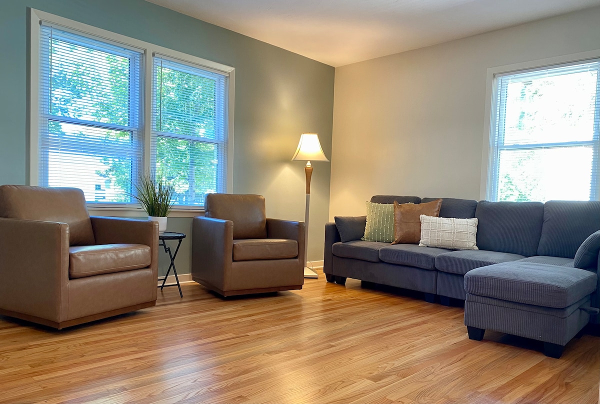 Enjoy a clean and stylish experience in the Juni Suite. Cook all your meals in the well equipped kitchenette, soak it up in the deep bathtub, and stay warm by the fireplace. A queen size memory foam bed and blackout roller shades will help you sleep soundly. The convertible sofa is easy to expand to a full size. Protect your vehicle in the off-street covered parking stall which is only a short walk to the entrance (7 stairs up and 13 down). Close to Union College/Shops.