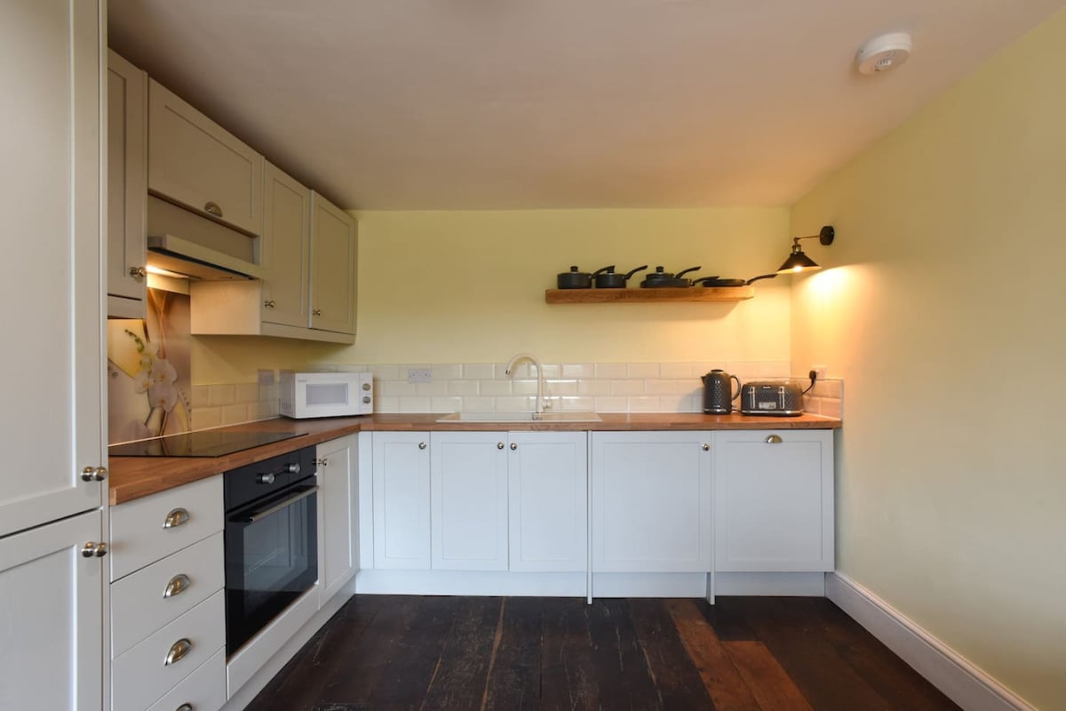 Lóiste álainn darach áiléir, le mothú cluthar. I suíomh tuaithe leath - tuaithe Foirfe do ghnó nó scíth a ligean Lóistín féinfhreastail príobháideach ina bhfuil cistin lánfheistithe le bainne agus pacáiste fáilteachais. Páirceáil saor in aisce agus Wi - Fi. 10 nóiméad ó Ospidéal Q A. An - ghar d'Acomhal 11 M27. 20 nóiméad do Portsmouth. Leaba dhúbailte chompordach. Le cithfholcadán báistí, earraí níocháin dea - mhéine. Achar siúil chuig tithe tábhairne. Radhairc iontacha & luí na gréine ón mbalcóin Rochtain ar chosáin rothaíochta,siúlóidí & Cosán an Chósta