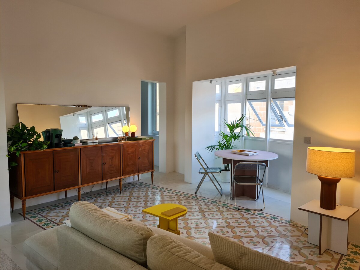 Cúinne Palatial dhá sheomra leapa (120sq.m/1291sq.f) atá suite ar an gcéad urlár de Palazzino 400 bliain d'aois i mbaile stairiúil Grand Harbour Cospicua, ag breathnú amach ar Valletta. Bhí an foirgneamh ar cheann de na chéad stiúideonna grianghrafadóireachta de chuid Mhálta i lár an 19ú haois agus tá sé iontach le stair, solas nádúrtha, gnéithe móra agus dearadh intí gan teorainn. Ordaíonn an réadmhaoin radhairc iontacha ar Eaglais Santa Margerita agus ar ghairdíní áille, ar bhallaí bastion agus ar spéirlíne na 'Trí Chathair '.