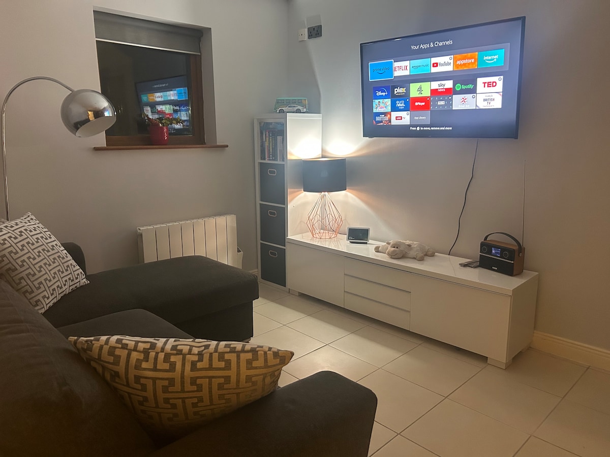 Árasán féinchuimsithe álainn geal sómasach in aice lenár dteach. Bealach isteach féin agus páirceáil phríobháideach. Seomra leapa amháin thuas staighre ina bhfuil leaba dhúbailte an - chompordach, leaba thoilg thíos staighre sa seomra suí a bhfuil beirt ina gcodladh ann. Tá an seomra folctha thuas staighre , cithfholcadán leictreach agus tuáillí clúmhacha úra áille. Pointí luchtaithe agus Wi - Fi ar fud an tseomra. Sorn dóite adhmaid sa seomra suí chun d'fhanacht a dhéanamh compordach! NÍ CHEADAÍTEAR ACH AÍONNA A CHUIRTEAR IN ÁIRITHE AR AN RÉADMHAOIN. Tuath álainn 1.2km lasmuigh de shráidbhaile Áth Dara