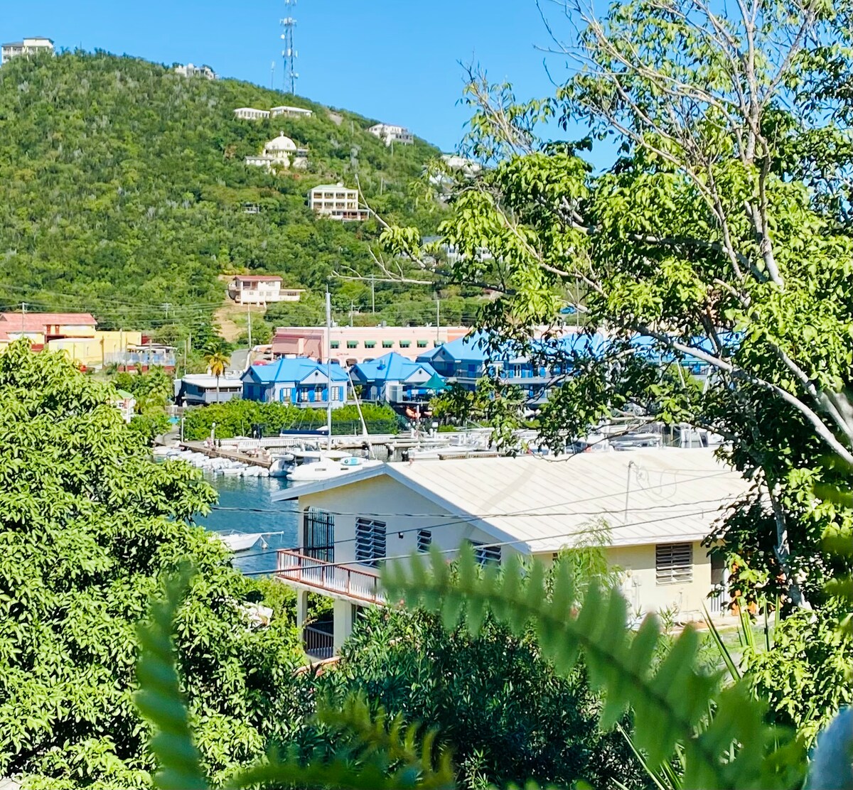 Recently renovated, beautiful beachy 2bedroom/2 bath unit with cathedral ceilings overlooking the azure waters of the Caribbean Sea. Watch the sunrise from the wrap balcony, enjoy 180 degree views of the islands (from Tortola to St John to St Croix), or sip on a nice cold drink after a day at the beach watching the boats pull into harbor.
