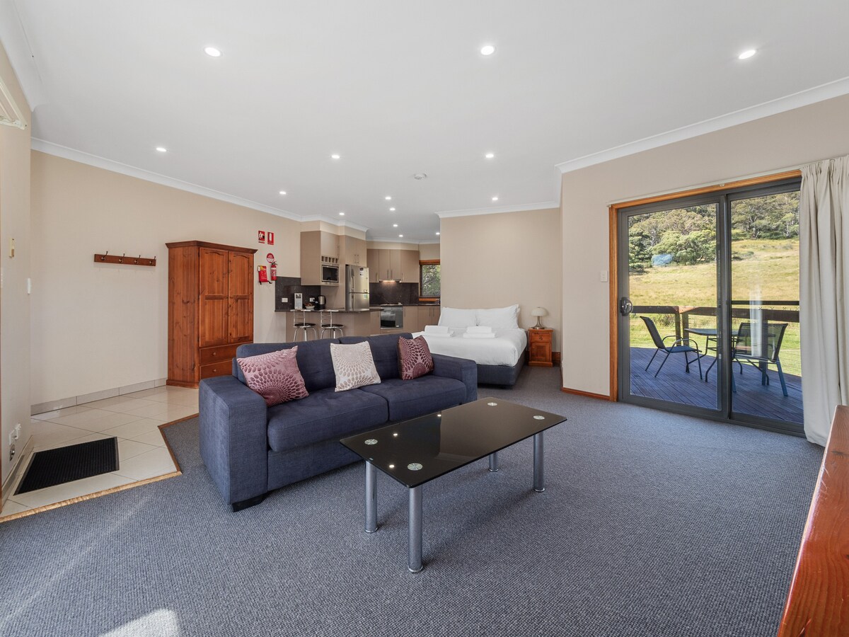 Deer Crest - Stiúideo fairsing in Crackenback, a oireann go hidéalach do lánúineacha, atá á bhainistiú go príobháideach ag úinéirí a chuireann rudaí beaga tuisceanacha ar fáil d'aíonna i gcur i láthair agus aird ar mhionsonraí. Chruthaíomar ár Stiúideo le grá dár n - aíonna chun taitneamh a bhaint as agus a scíth a ligean ann. Teolaí agus fáilteach... is féidir le haíonna cúlú, scíth a ligean agus scíth a ligean agus tú ag tabhairt faoin aer sléibhe, taithí a fháil ar an dúlra agus taitneamh a bhaint as na radhairc áille chuig na raonta máguaird agus ar pháirceanna féir ina mbíonn fianna agus cangarúnna ar féarach go sona sásta.