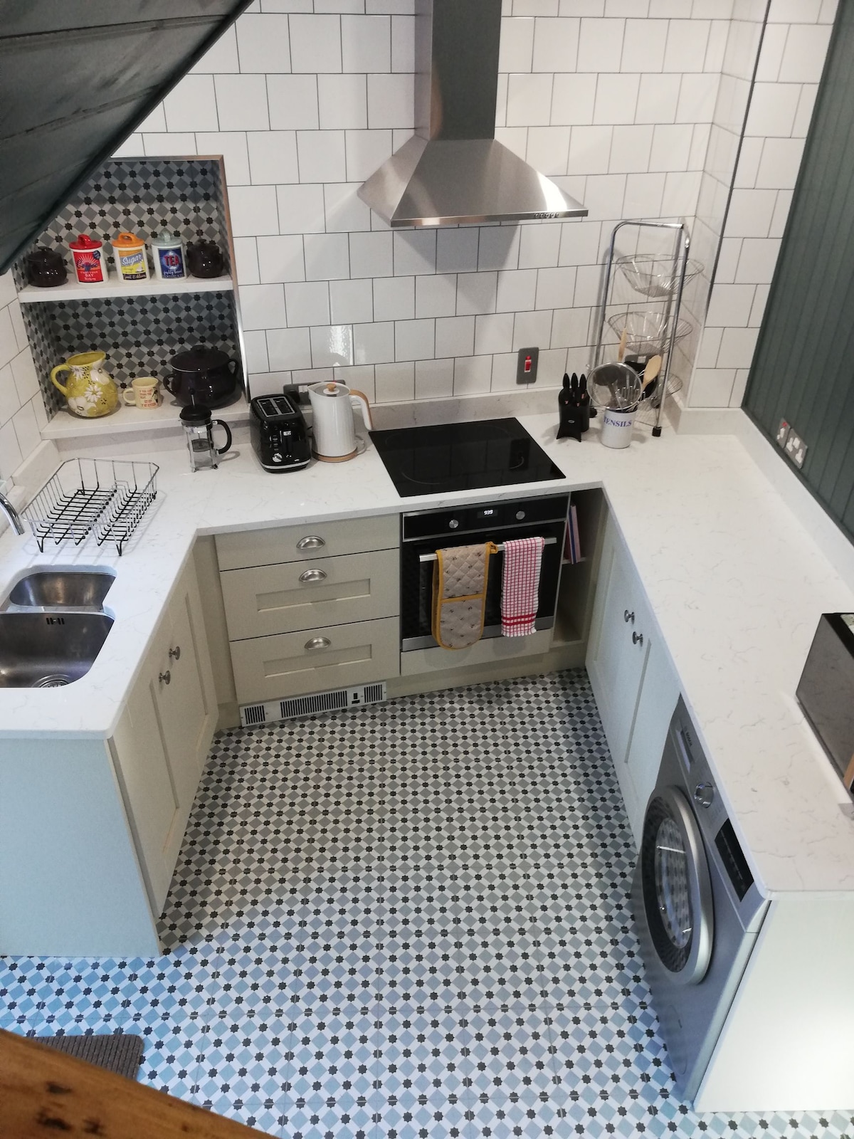 Áit iomlán. Áit álainn éadrom le radhairc farraige, tine oscailte, codladh 2. Tá a bhealach isteach féin chuig an áit ar fad lánléargais radhairc farraige le rochtain ar an trá ón réadmhaoin . Cistin lánfheistithe, tae & caife saor in aisce agus roinnt bunghnéithe cistine ola, piobar salann plúr. Áit itheacháin, seomra suí agus seomra leapa ensuite dúbailte. Seomra cithfholctha thíos staighre inár siopa seandachtaí a osclaítear 1 -5 i rith an tsamhraidh.